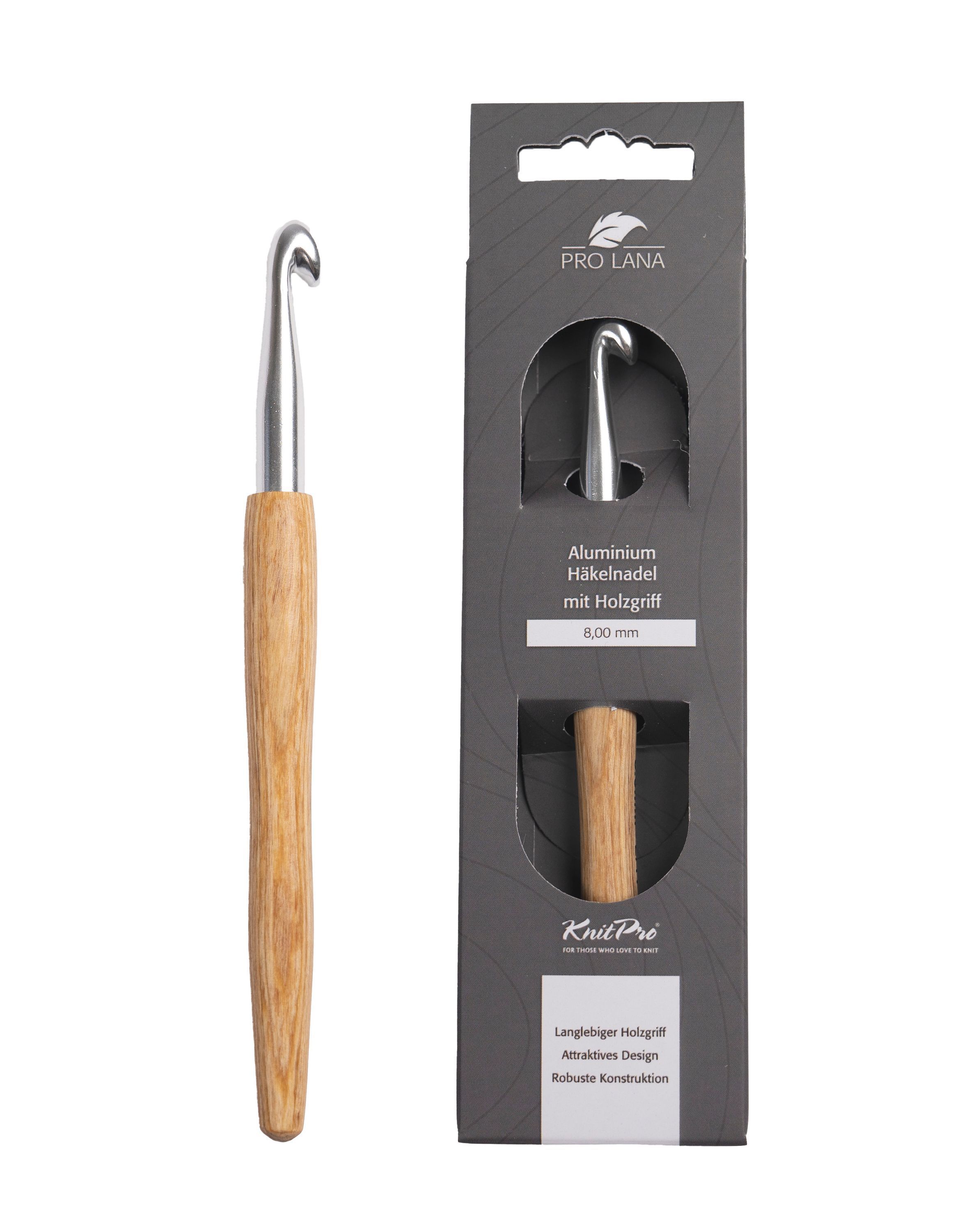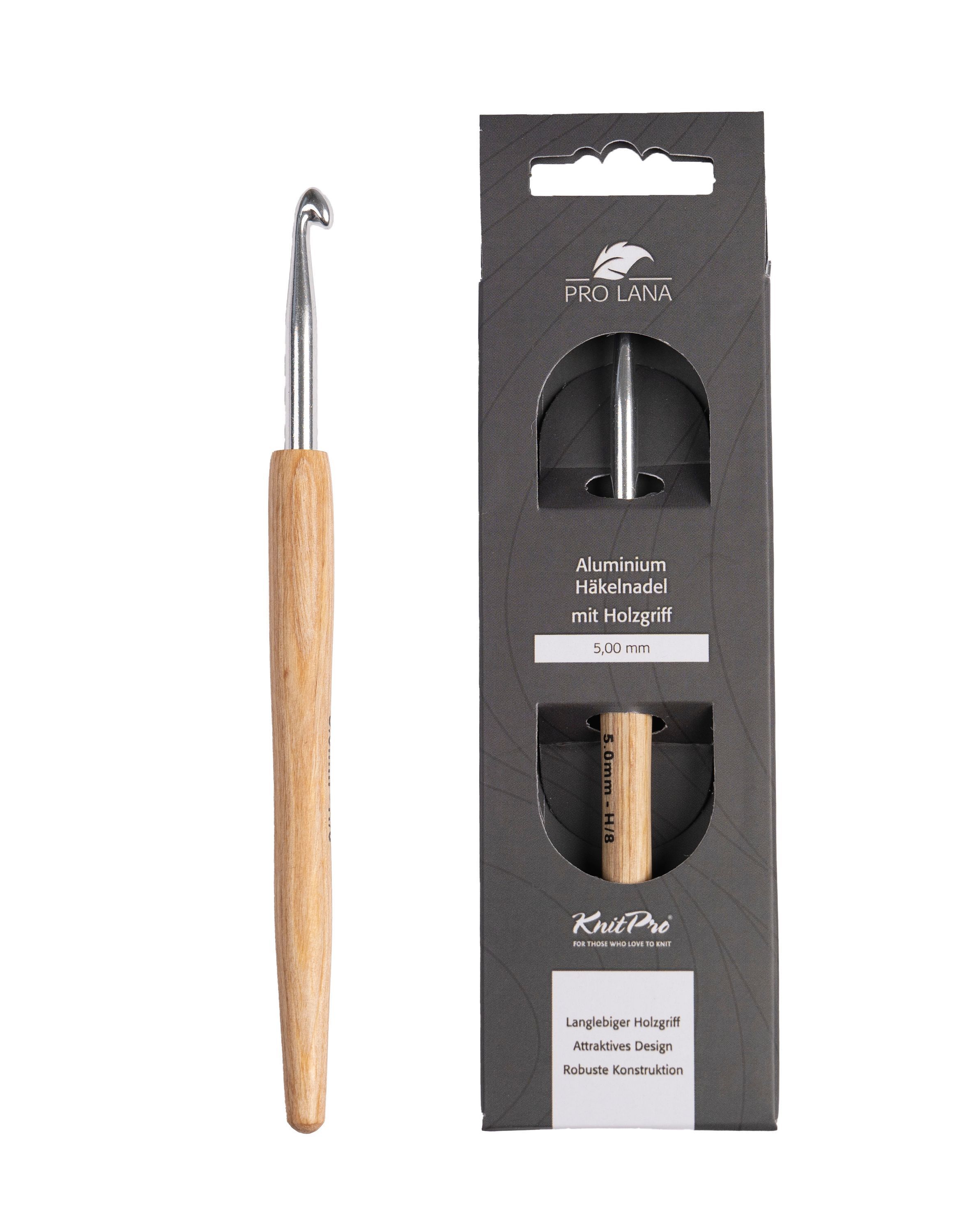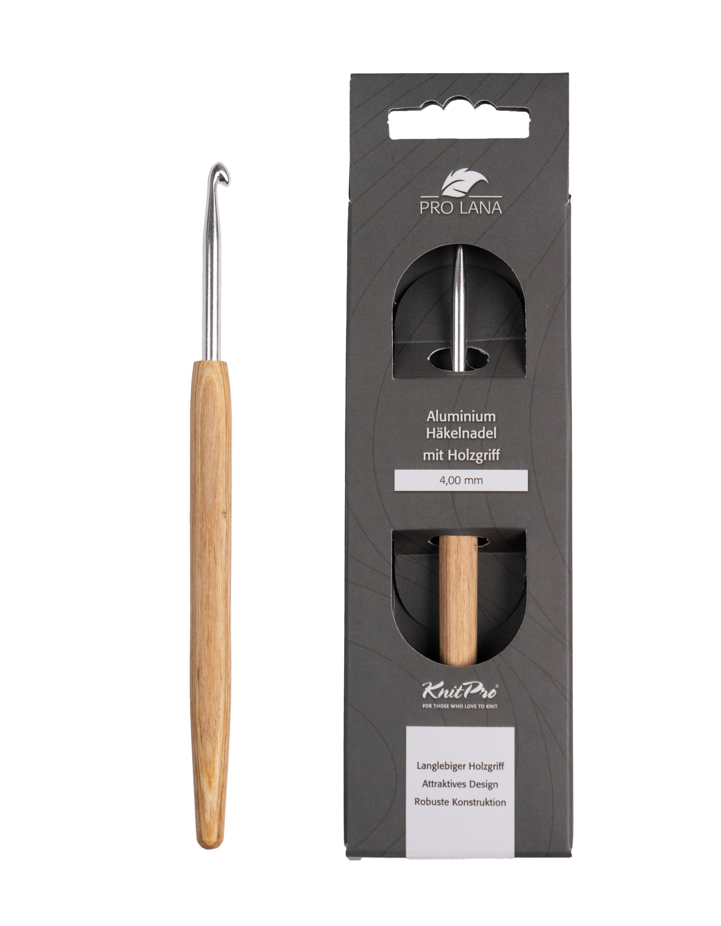 Pro Lana KnitPro Natural Aluminium Häkelnadel mit Birkenholzgriff 0,5 - 12 mm