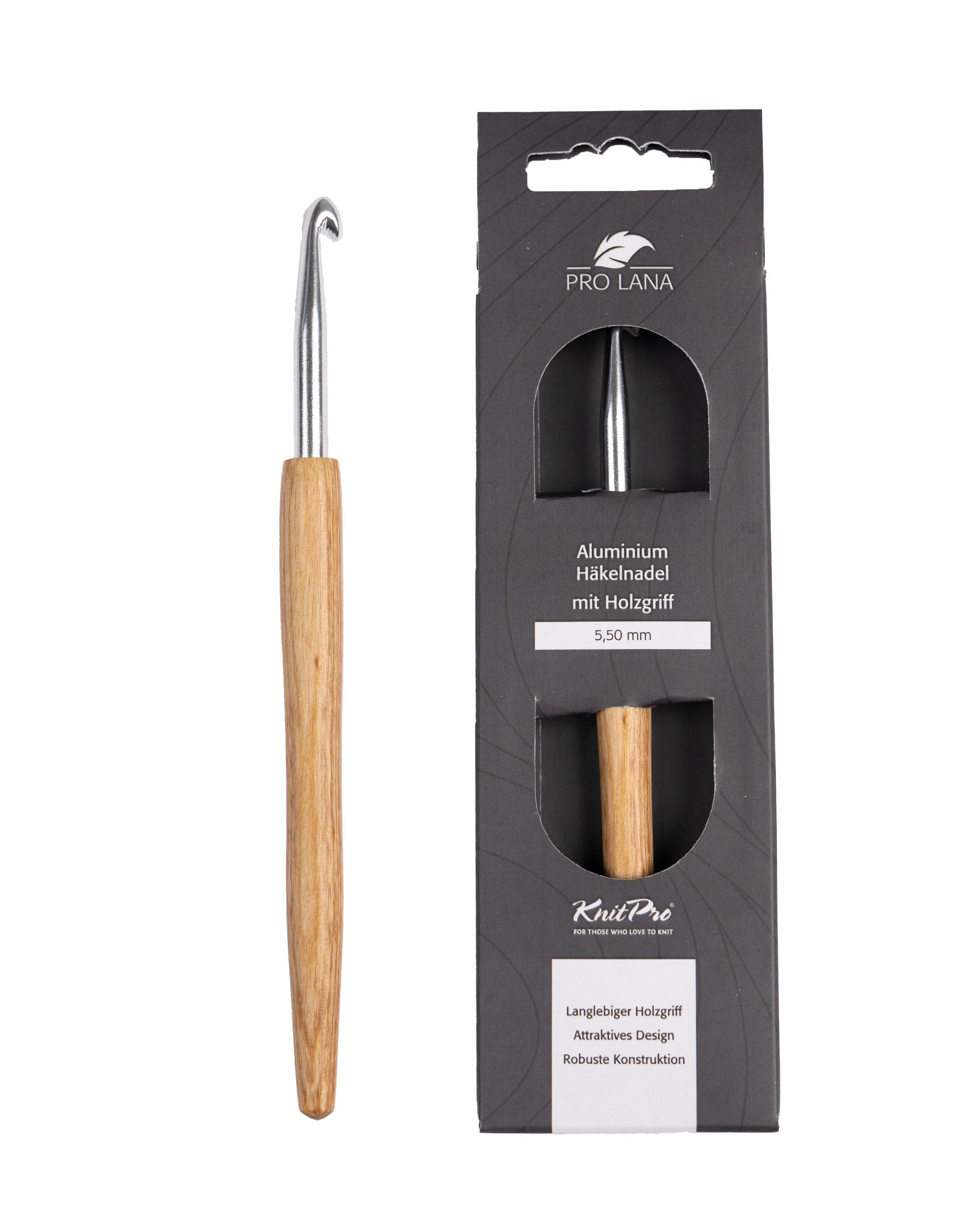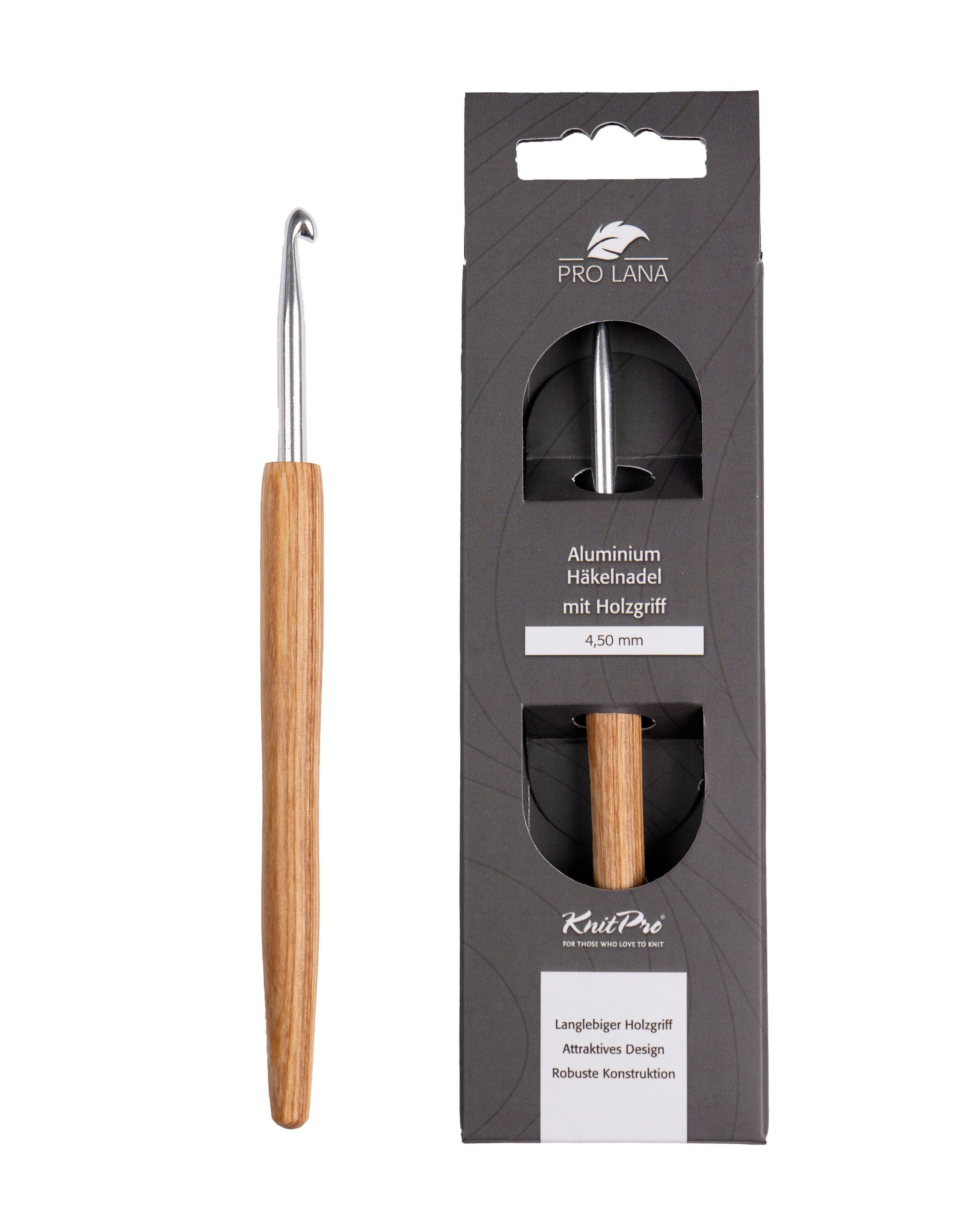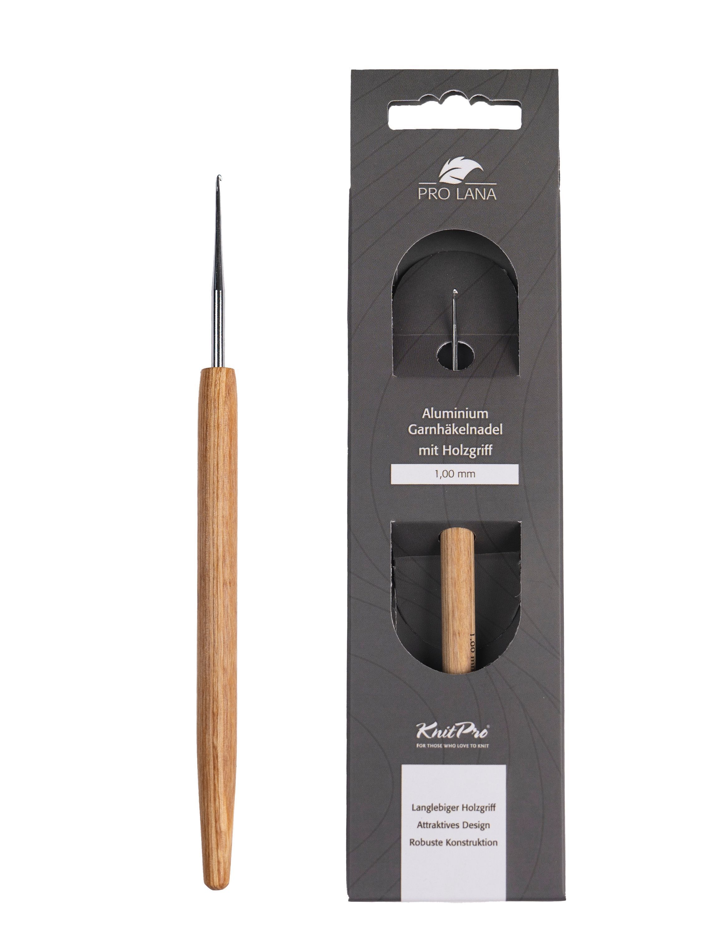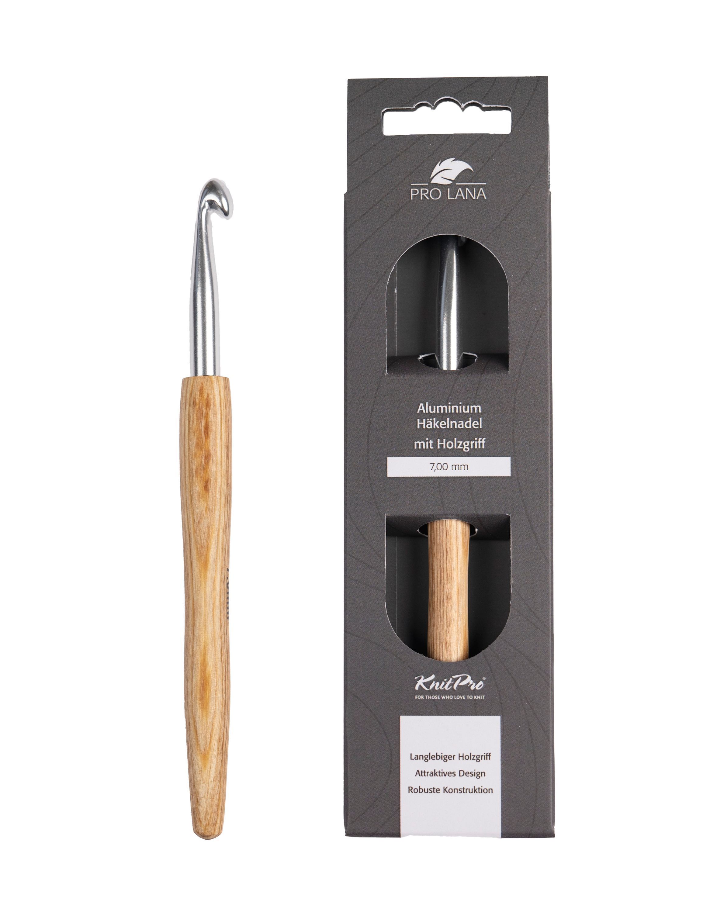Pro Lana KnitPro Natural Aluminium Häkelnadel mit Birkenholzgriff 0,5 - 12 mm