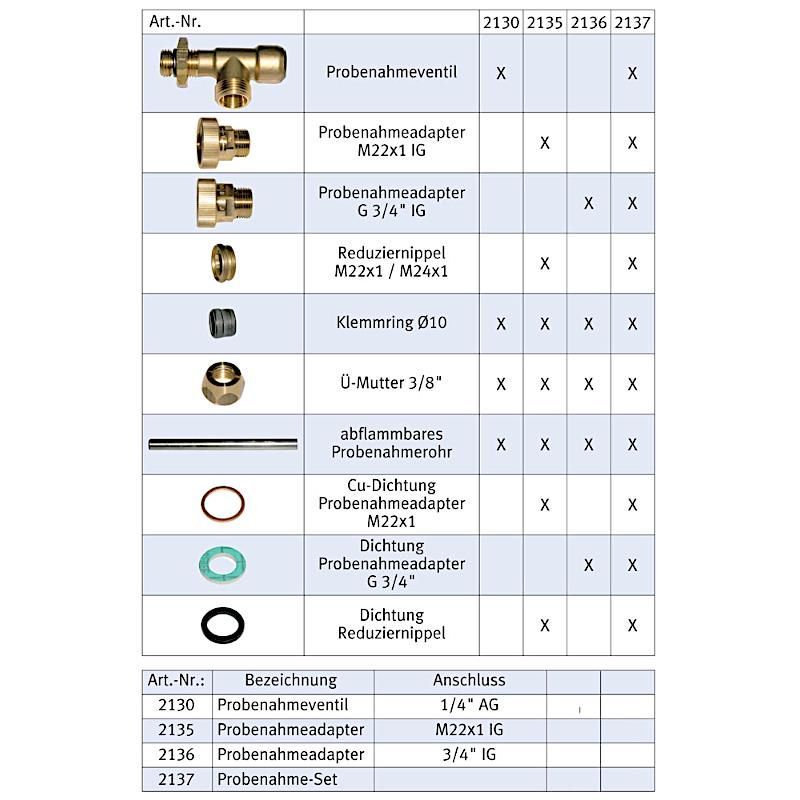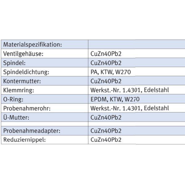Probenahme Ventil und Probenahme Adapter Komplett-Set DVGW geprüft DN8