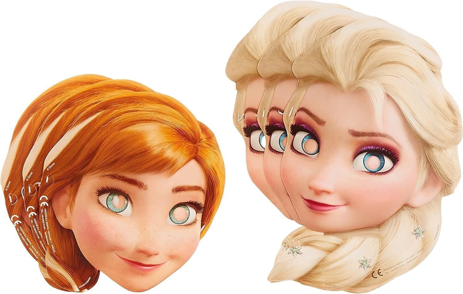 Procos 85967 Anna und Elsa Card Mask - Frozen Pappmasken mit Aufdruck, 6er Set
