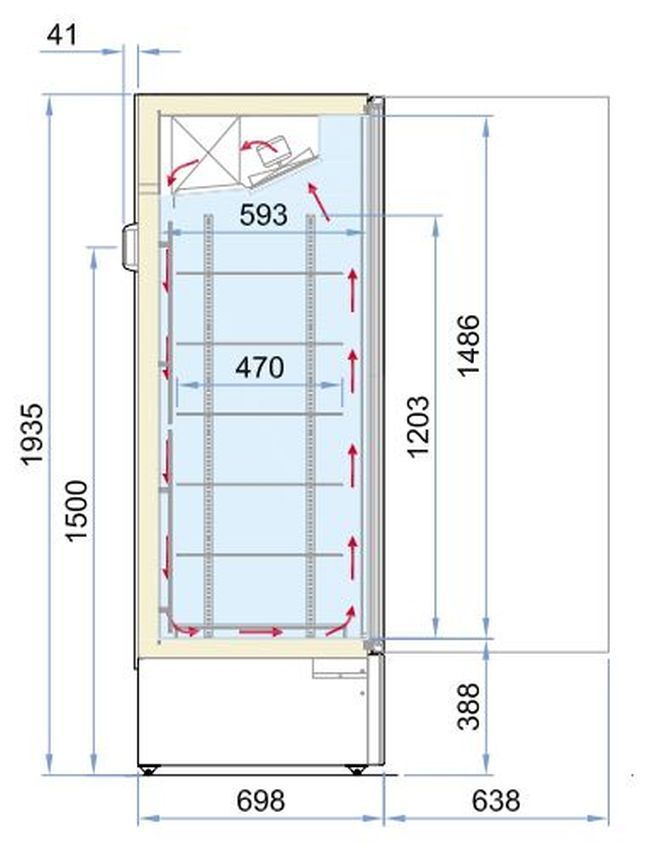 • Display Tiefkühlschrank mit Glastüren - 1000 Liter, mit Türheizung, Umluft