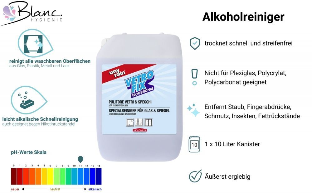 Profi-Alkoholreiniger, Glasreiniger, Spiegelreiniger, 1 x 10000 ml Kanister, trocknet
