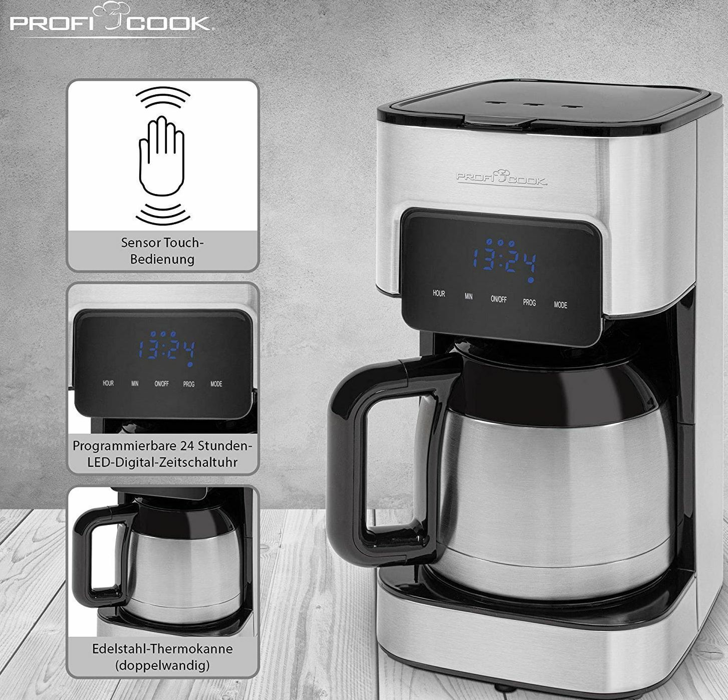ProfiCook Profi Cook PCKA1191 Digitale Kaffeemaschine 1,2L Thermokanne 800W LCD UhrAUTOOFF