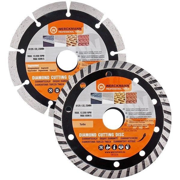 Profi Diamanttrennscheibe 125 mm 2 x Stück Set Werckmann für Beton und Steine