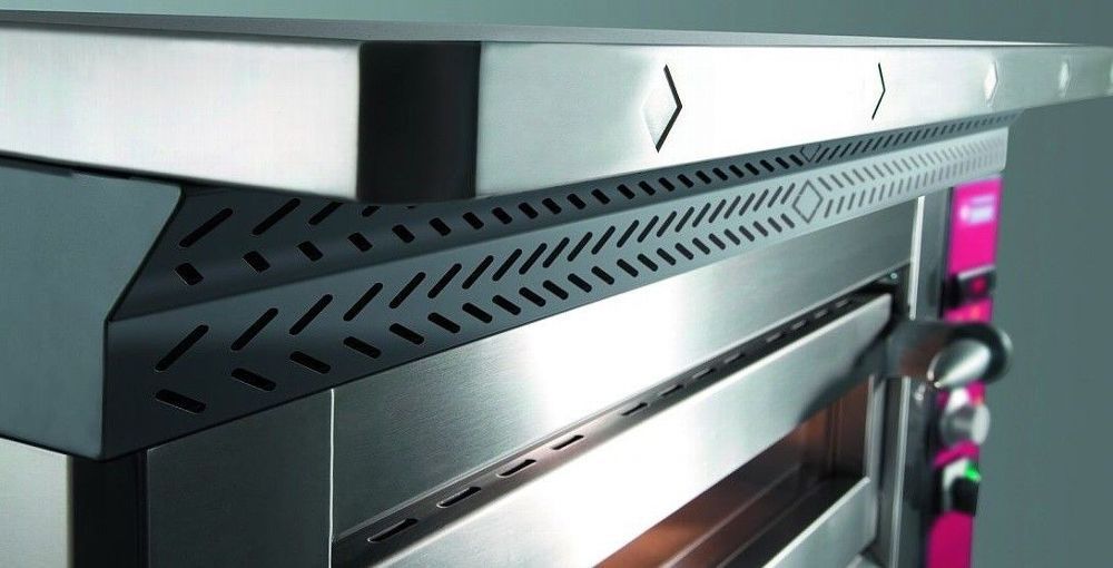Elektro Pizzaofen "Professional" für 12 Pizzen Ø 350 mm Innenmaße (BxTxH): 700 x 1050 x 150 mm Anschlusswert: 18,6 KW Elektrischer Anschluss: 400 V / 3N / 50 Hz Außenmaß: 1060 x 1240 x 730 mm
