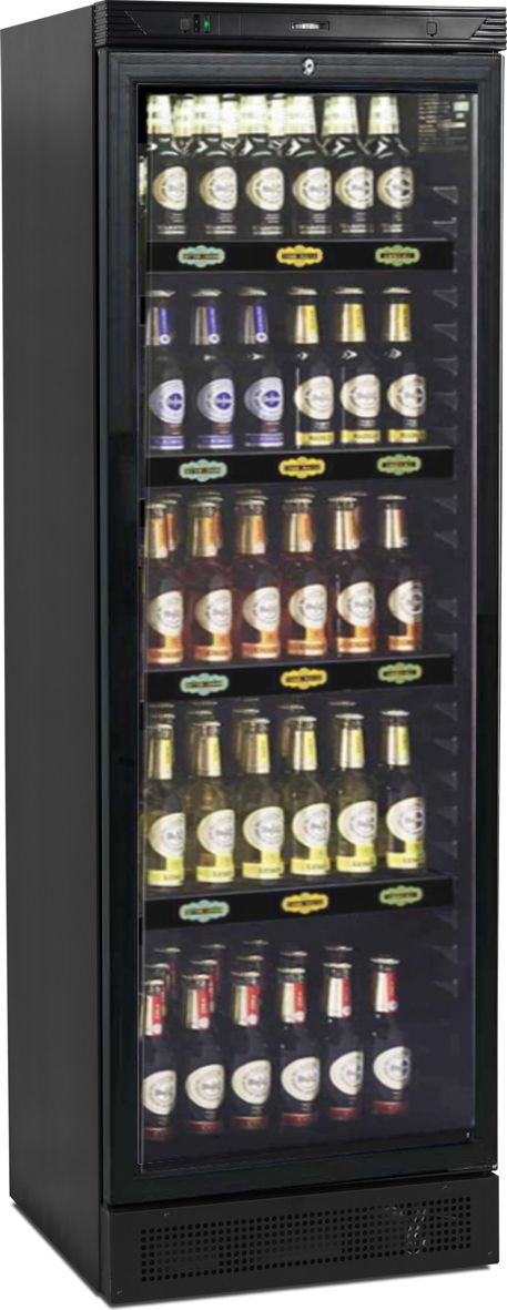 Profi Getränkekühlschrank mit 1 Glastür - 298 Liter, schwarz, abschließbar