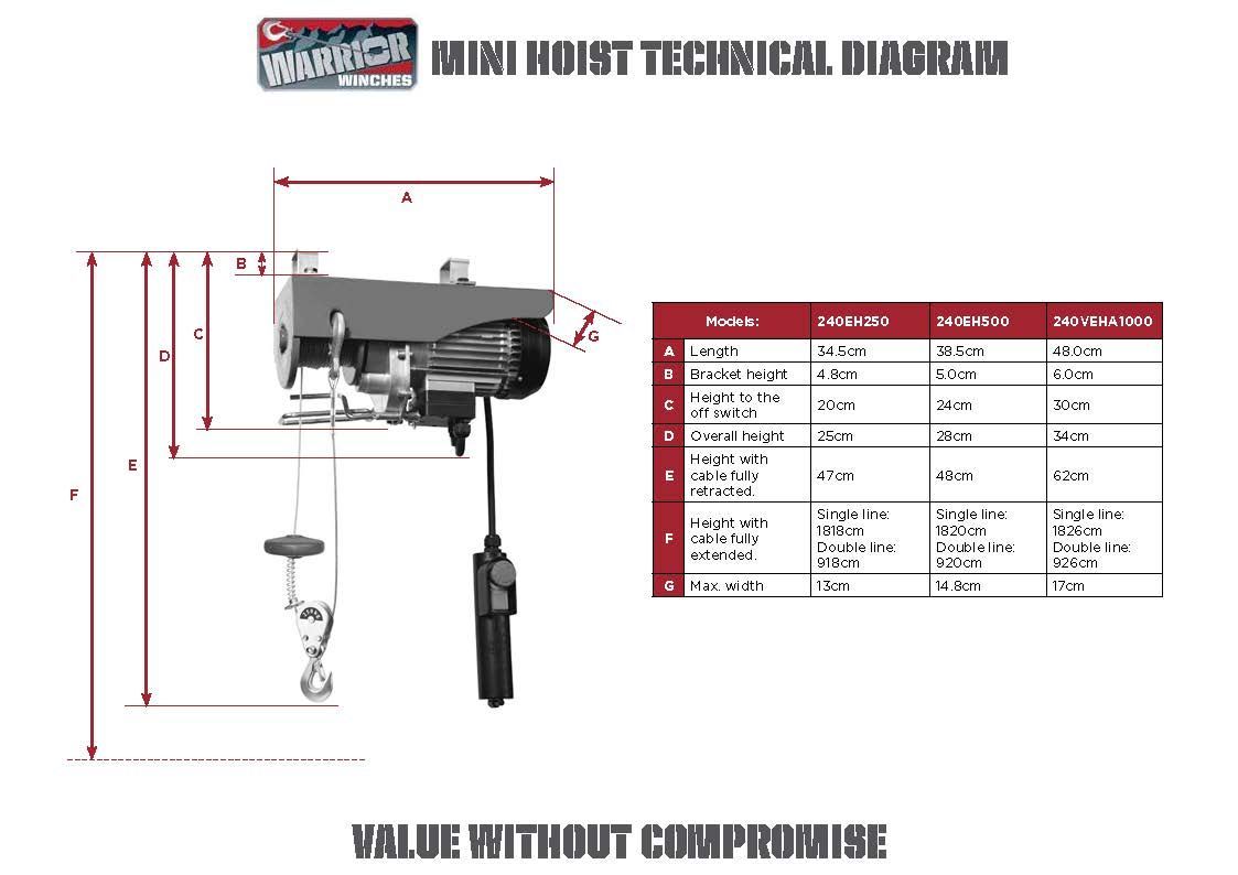 Profi Hebezug Warrior 500/990 kg 230 V 18m Seil Seilzug Seilwinde Hebezeug Kran