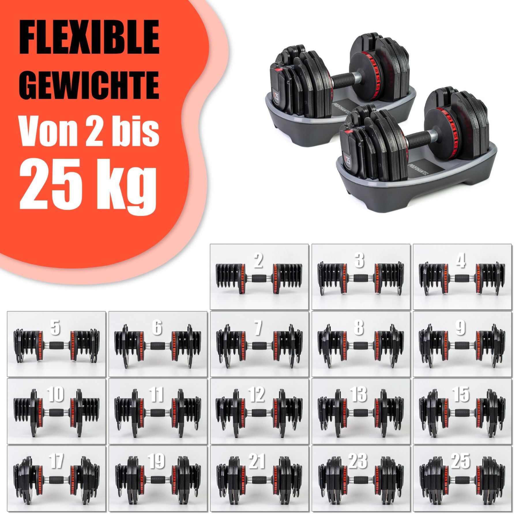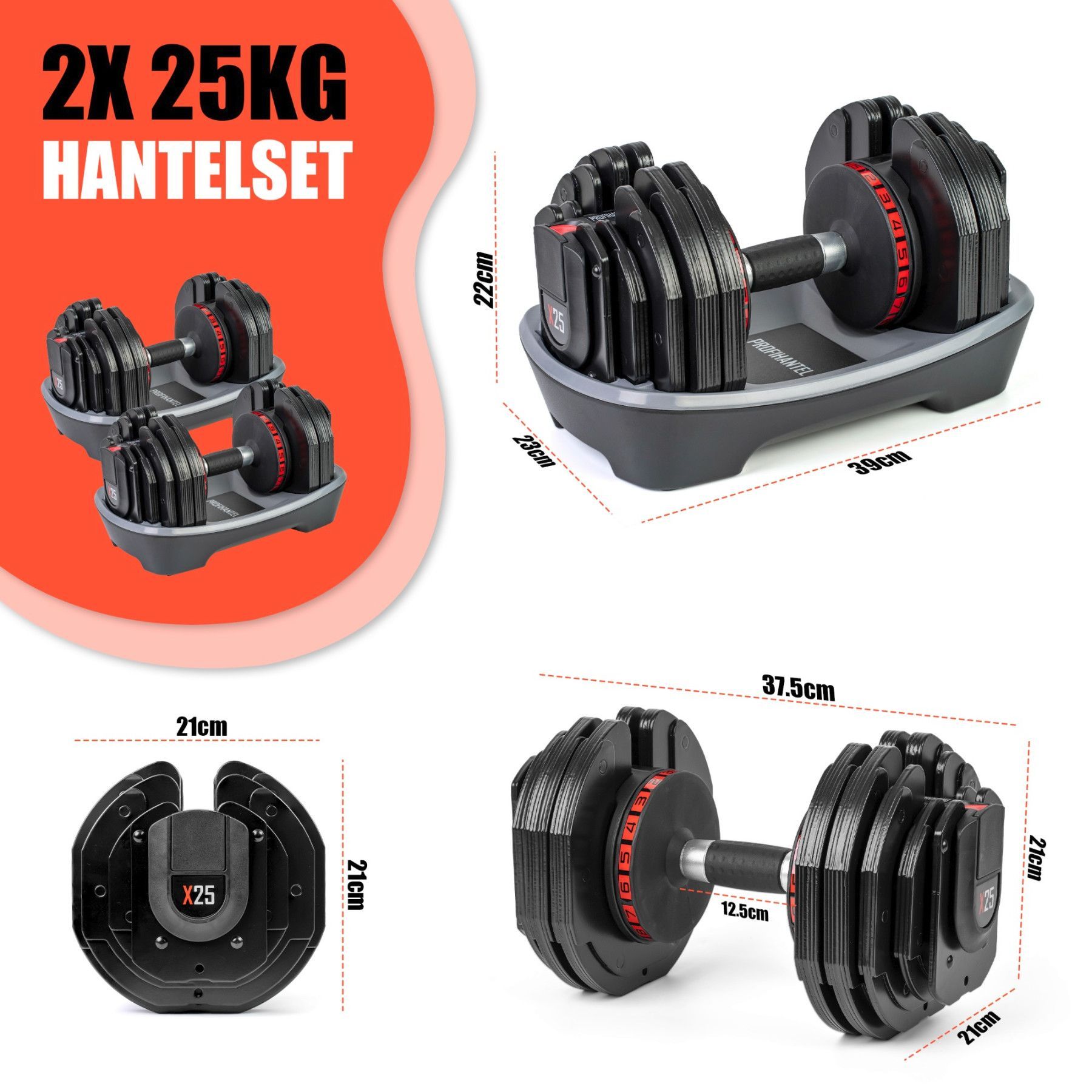 Profihantel Profihantel X25 Hantelsystem | 2 bis 25 kg | 2 Hanteln mit Ablageschale