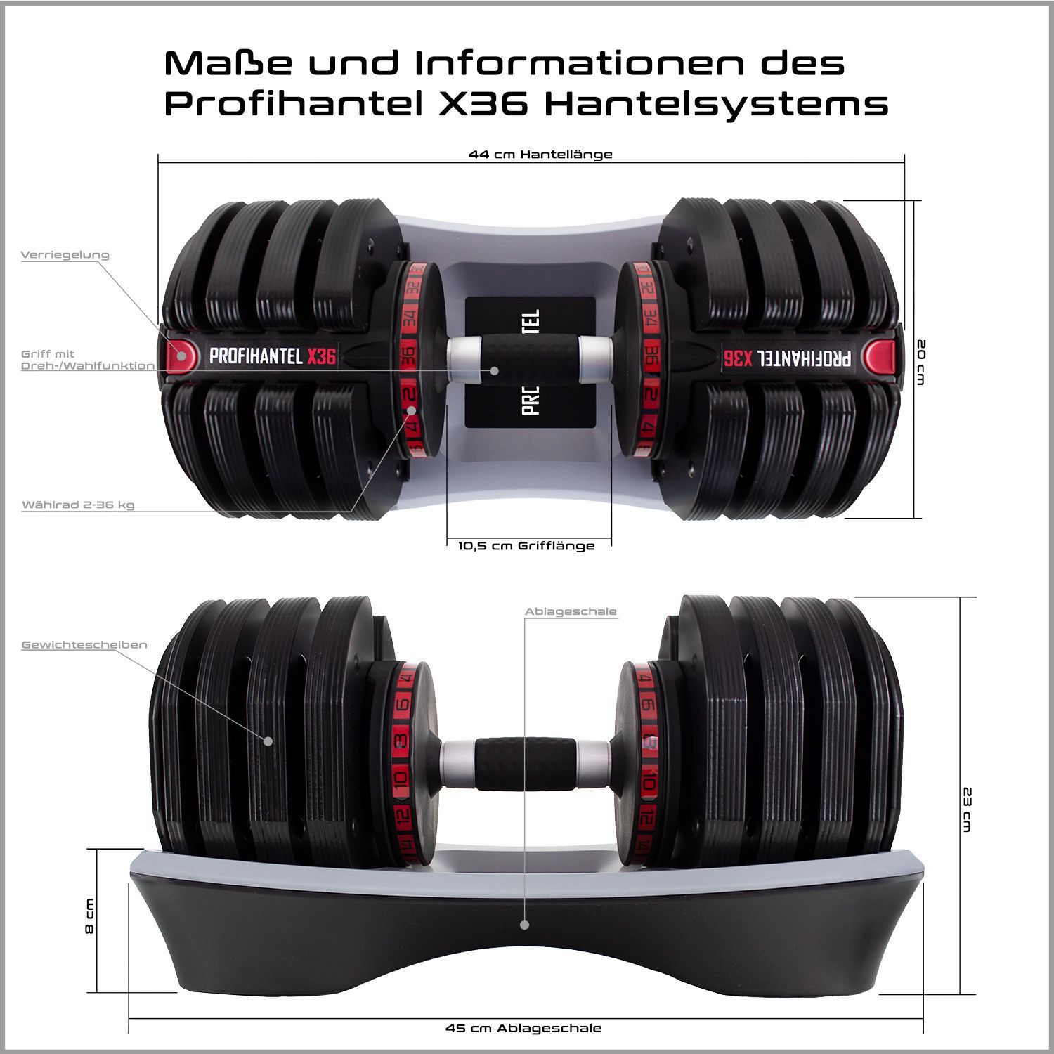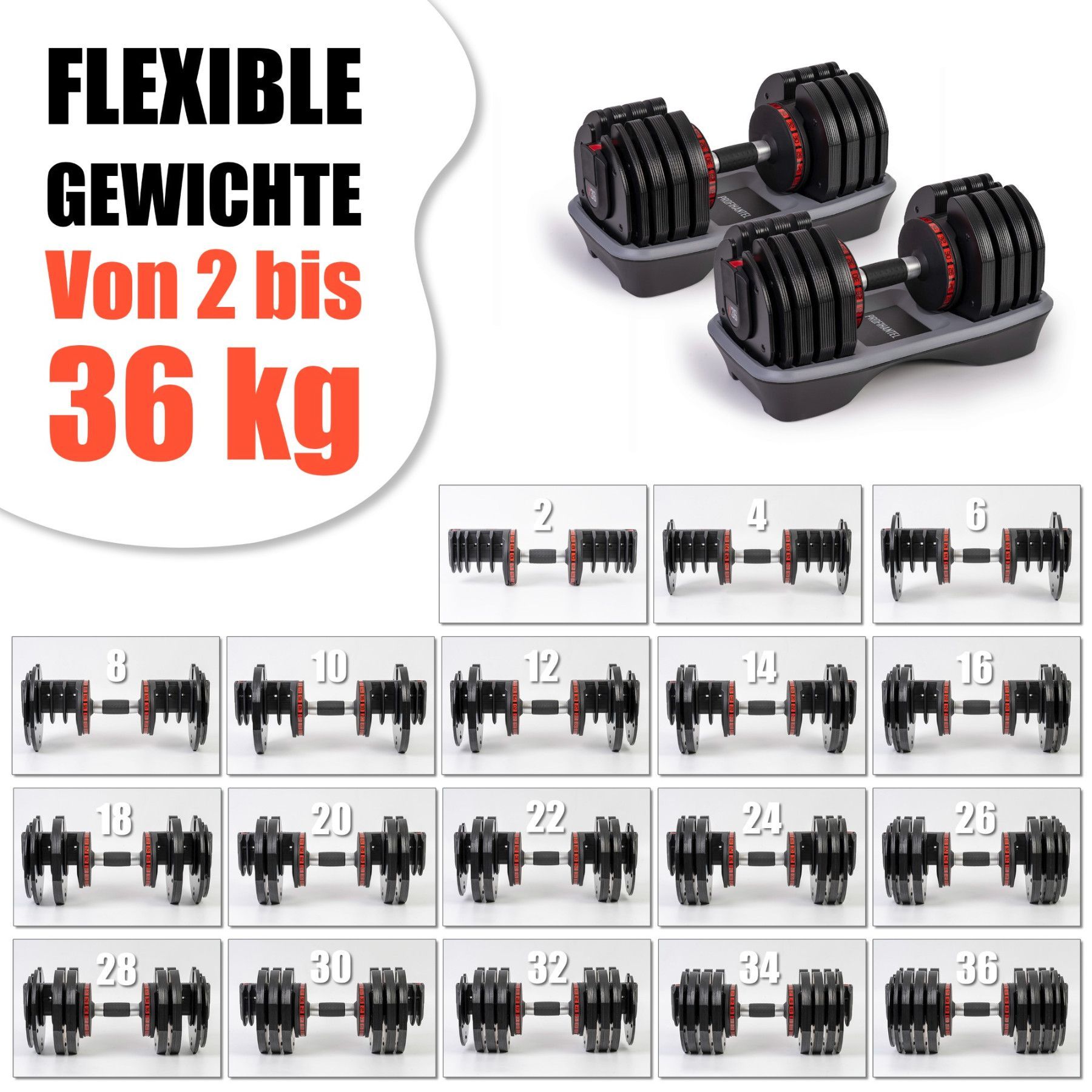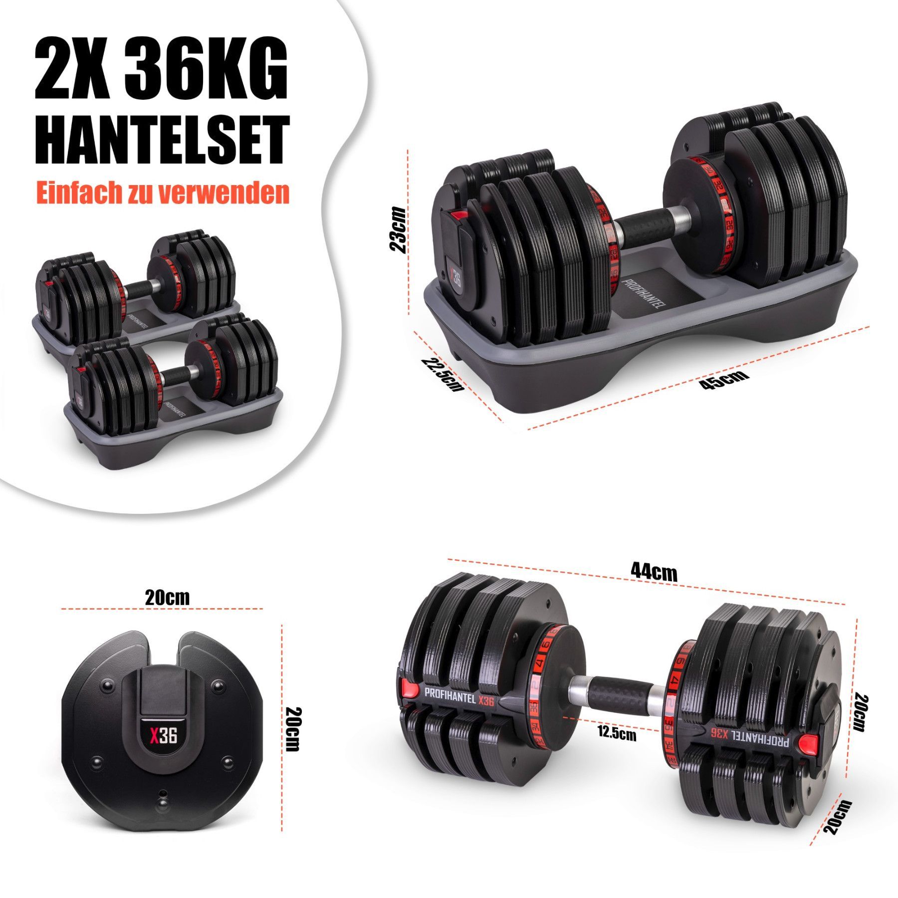 Profihantel Profihantel X36 Hantelsystem | 2 bis 36 kg | Einstellbare Hantel | ohne Ständer