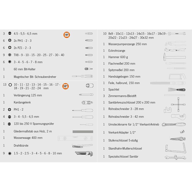 Projahn Sanitär Werkzeugkoffer 98 tlg., hochwertiges Sanitär-Sortiment im Koffer