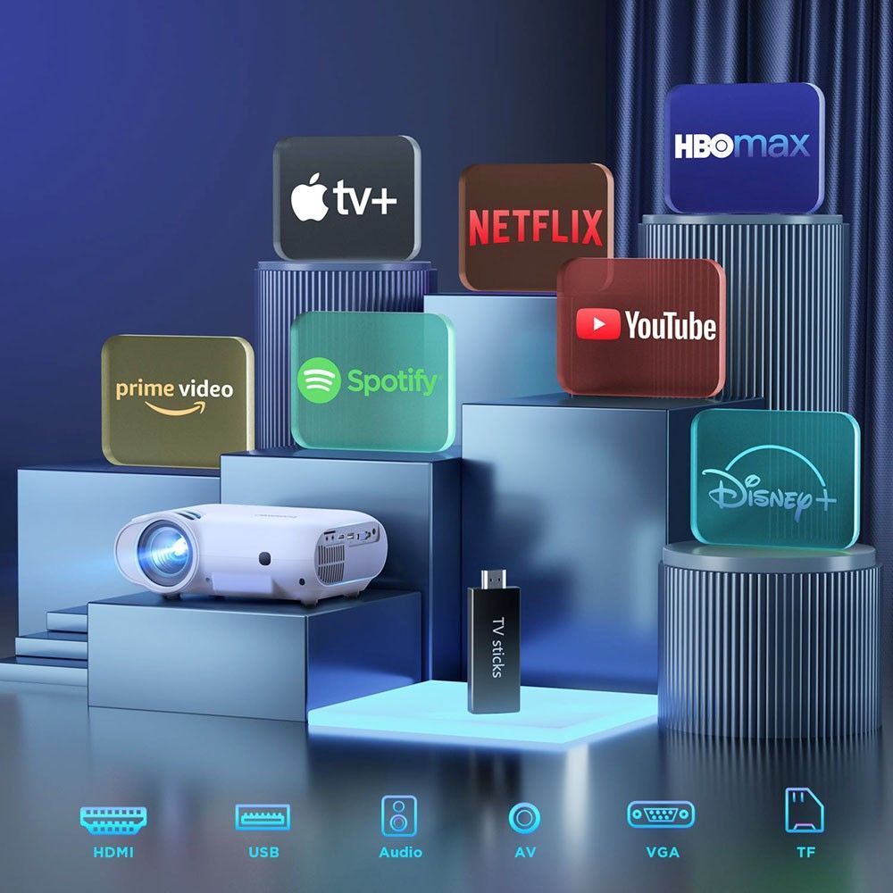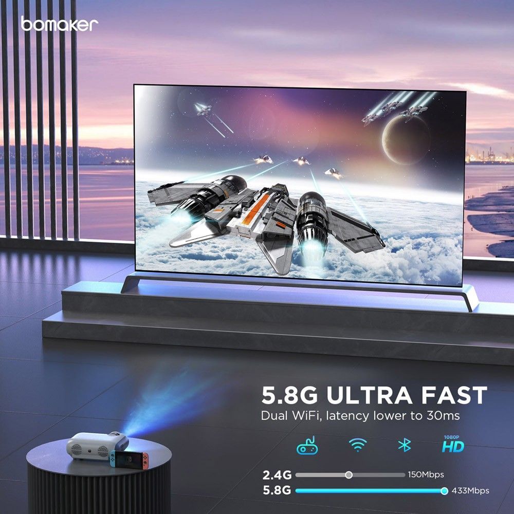 Projektor Beamer 421 Max Native 720P 300 ANSI Lumen 2.4G 5.8G Wi-Fi HDTV Bomaker
