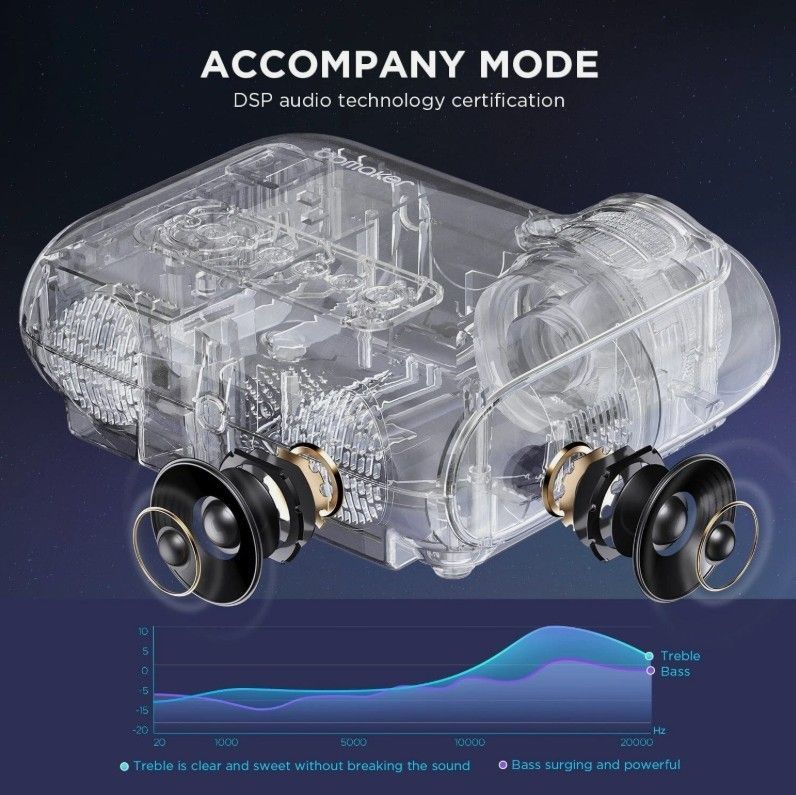 Proprietäres DSP-Audio von Sound Blaster Wir haben das proprietäre DSP-Audio von Sound Blaster in den Projektor implantiert, um Ihnen räumliche akustische Effekte und helle Höhen, sanfte Mitten und tiefe Bässe zu bieten. Nachdem Sie sich mit dem Bluetooth-Lautsprecher verbunden haben, können Sie die