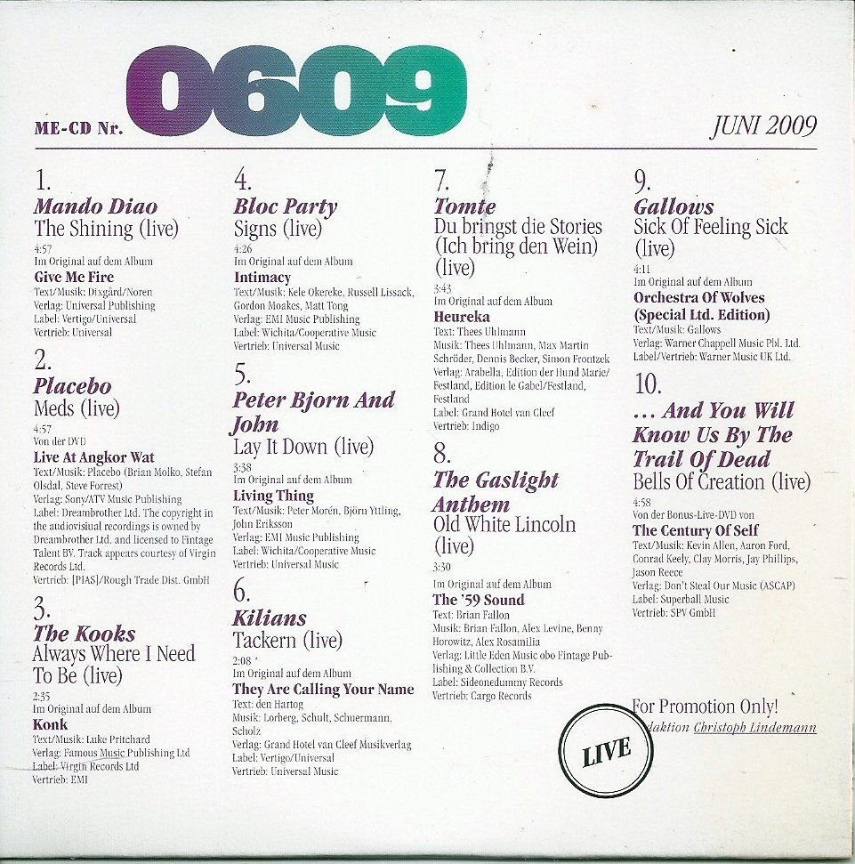 Titel: Musikexpress Juni 2009 ME-CD Nr. 0609 - Live (Promo)
