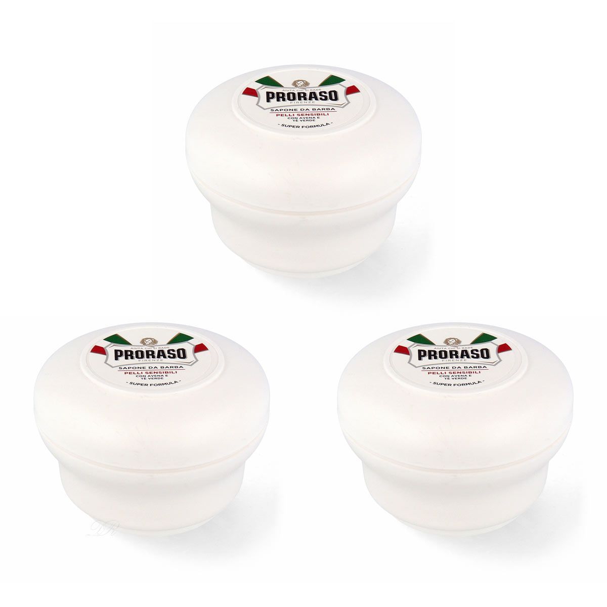 PRORASO Proraso Rasierseife für empfindliche Haut im weissen Tiegel 3x 150ml