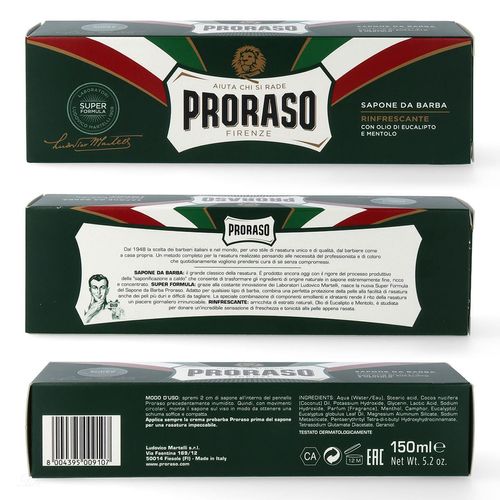 Proraso Rasierseife Tube Eukalyptusöl und Menthol 6x 150ml