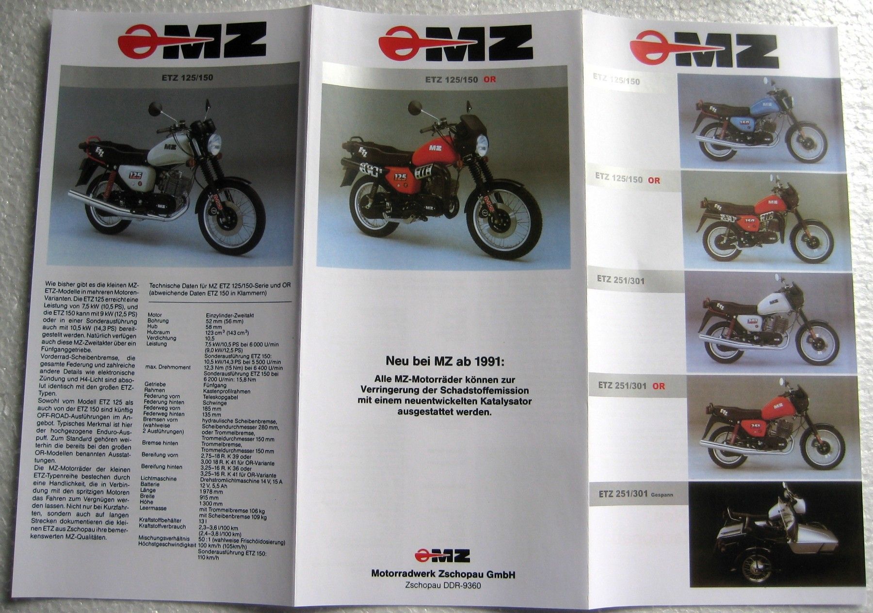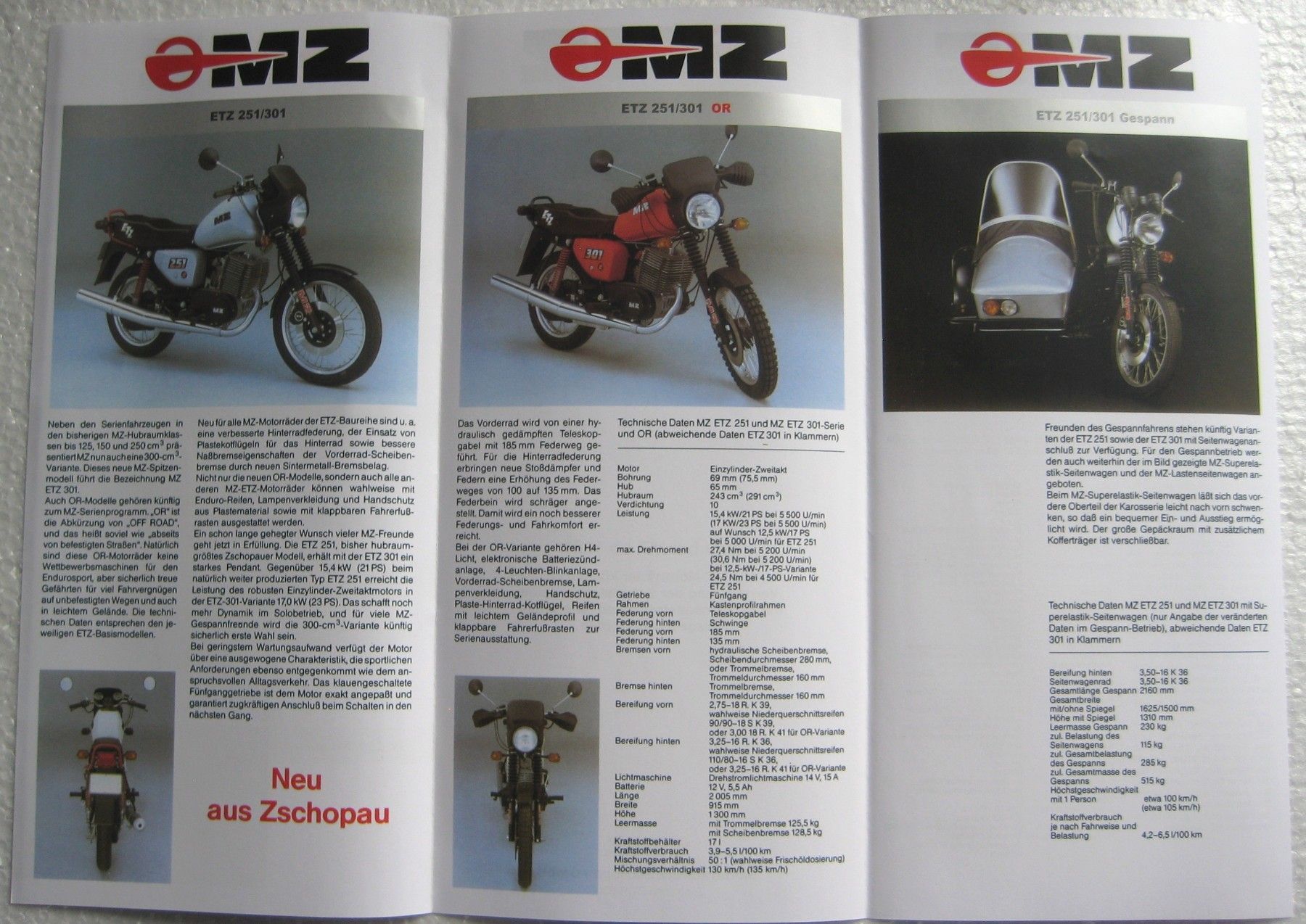Prospekt Werbung Datenblatt Motorrad MZ ETZ 125/150 OR ETZ 251/301 OR Gespann