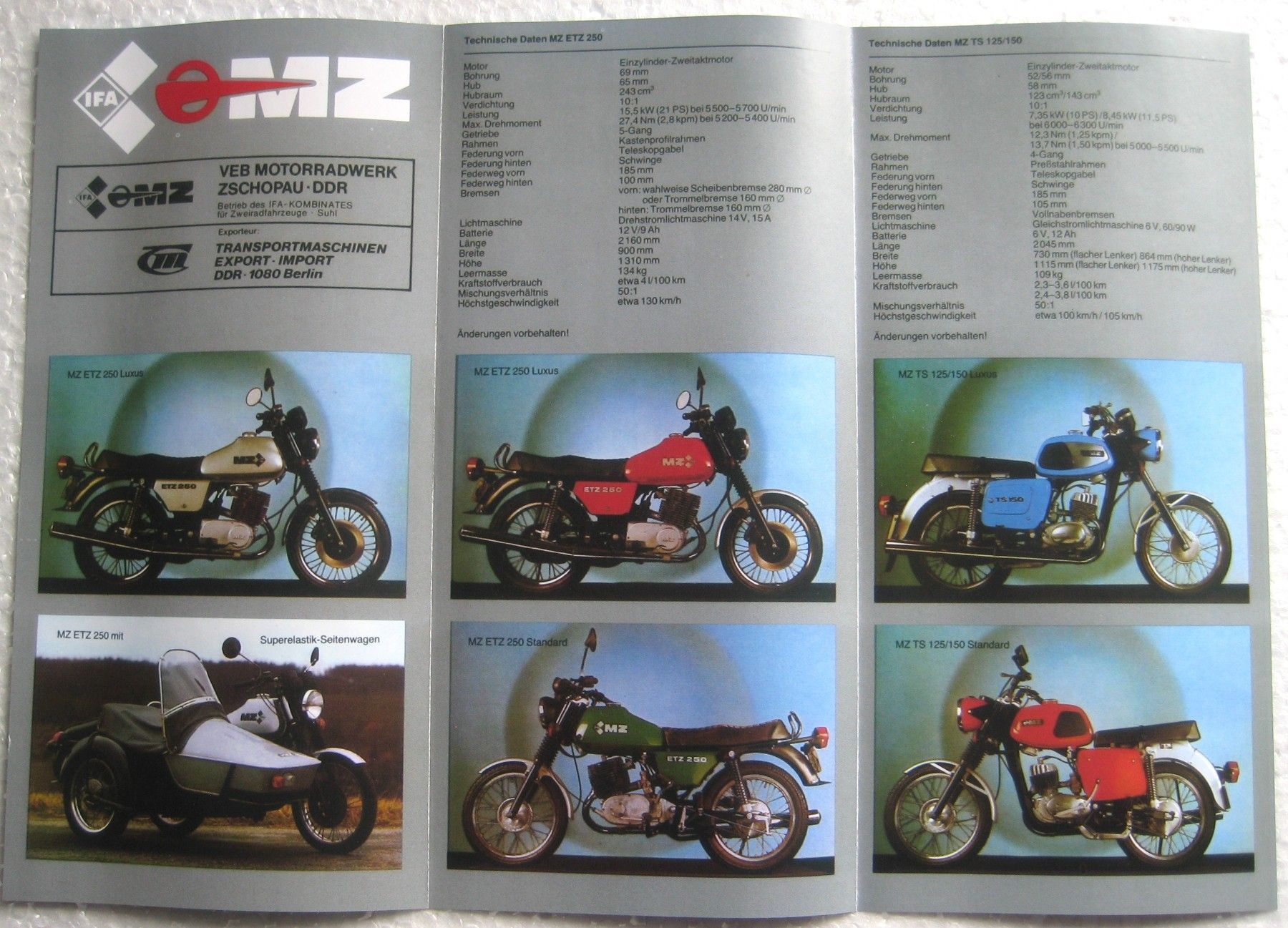 Prospekt Werbung Datenblatt Motorrad MZ ETZ Luxus Superelastik TS 125 150 Luxus
