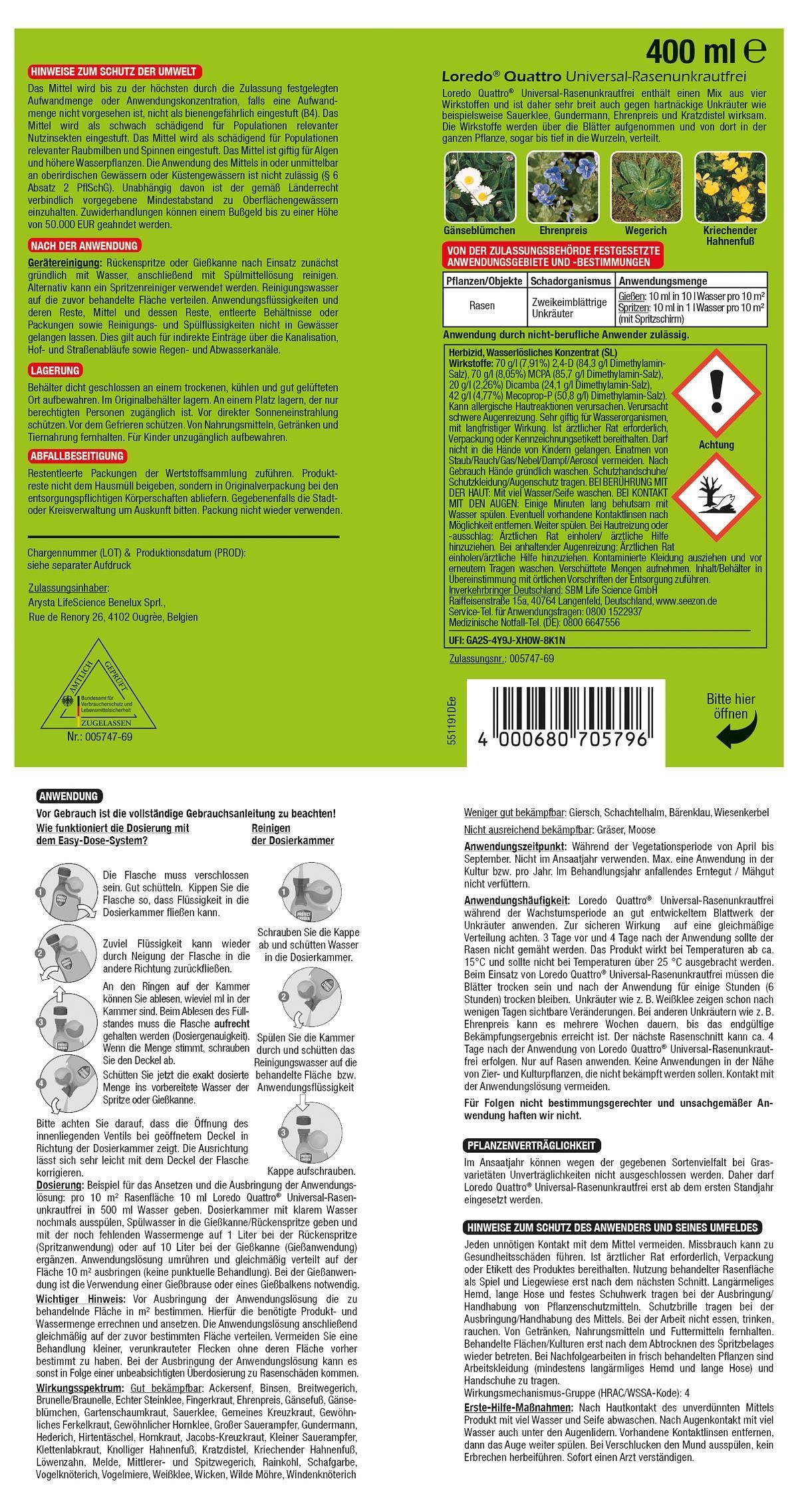 Protect GARDEN Loredo® Quattro Universal-Rasenunkrautfrei 400 ml für 400 m²