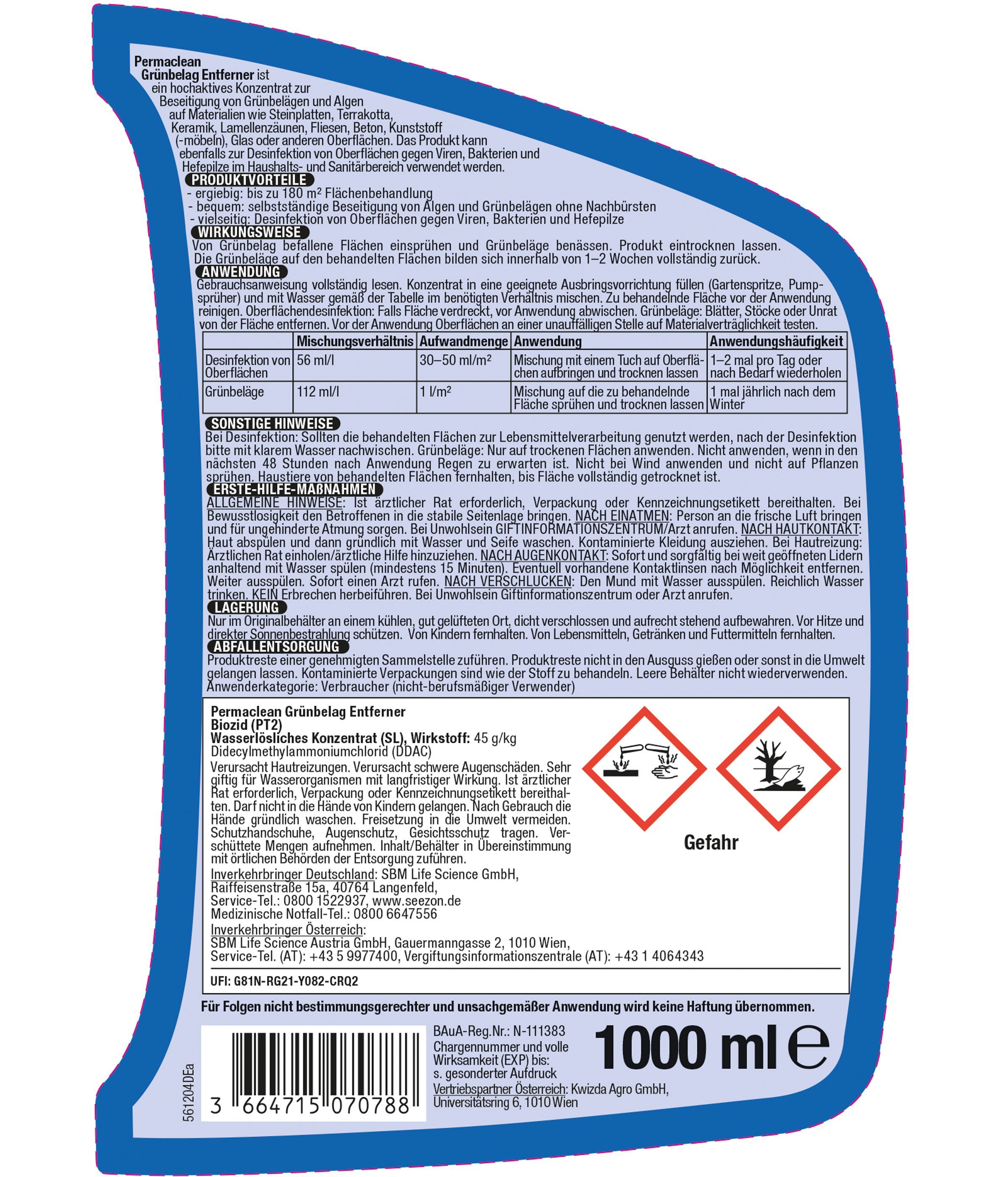Protect GARDEN® Permaclean Grünbelag Entferner Konzentrat, 1 Liter