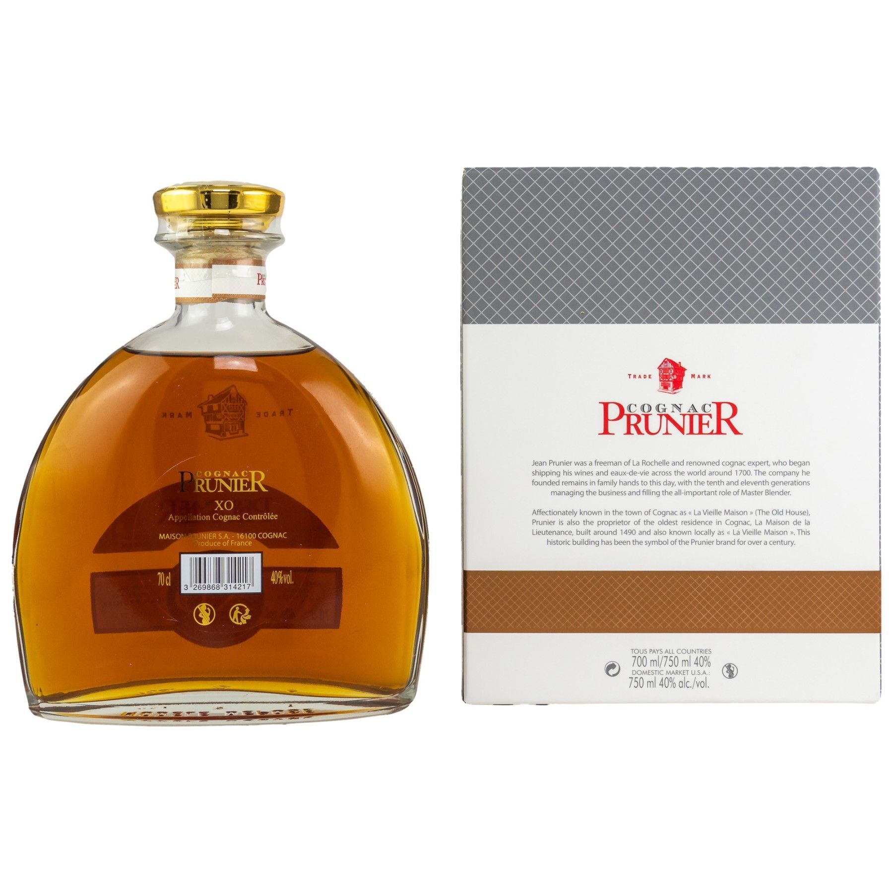 Prunier Carafe XO Cognac 0,7 ltr. 40% Vol. in Geschenkkarton