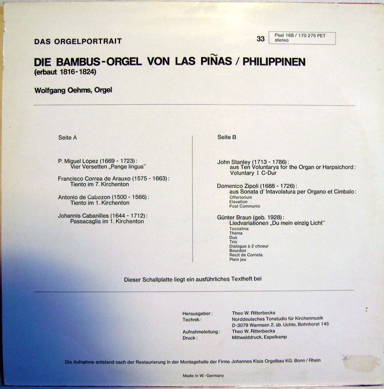 Psallite 168/170 275 PET - Wolfgang Oehms - Die Bambus-Orgel Von Las Piñas / Ph