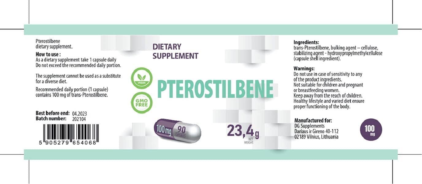 Pterostilbene 100mg 90 Vegan Capsules, No GMO. Hepatica