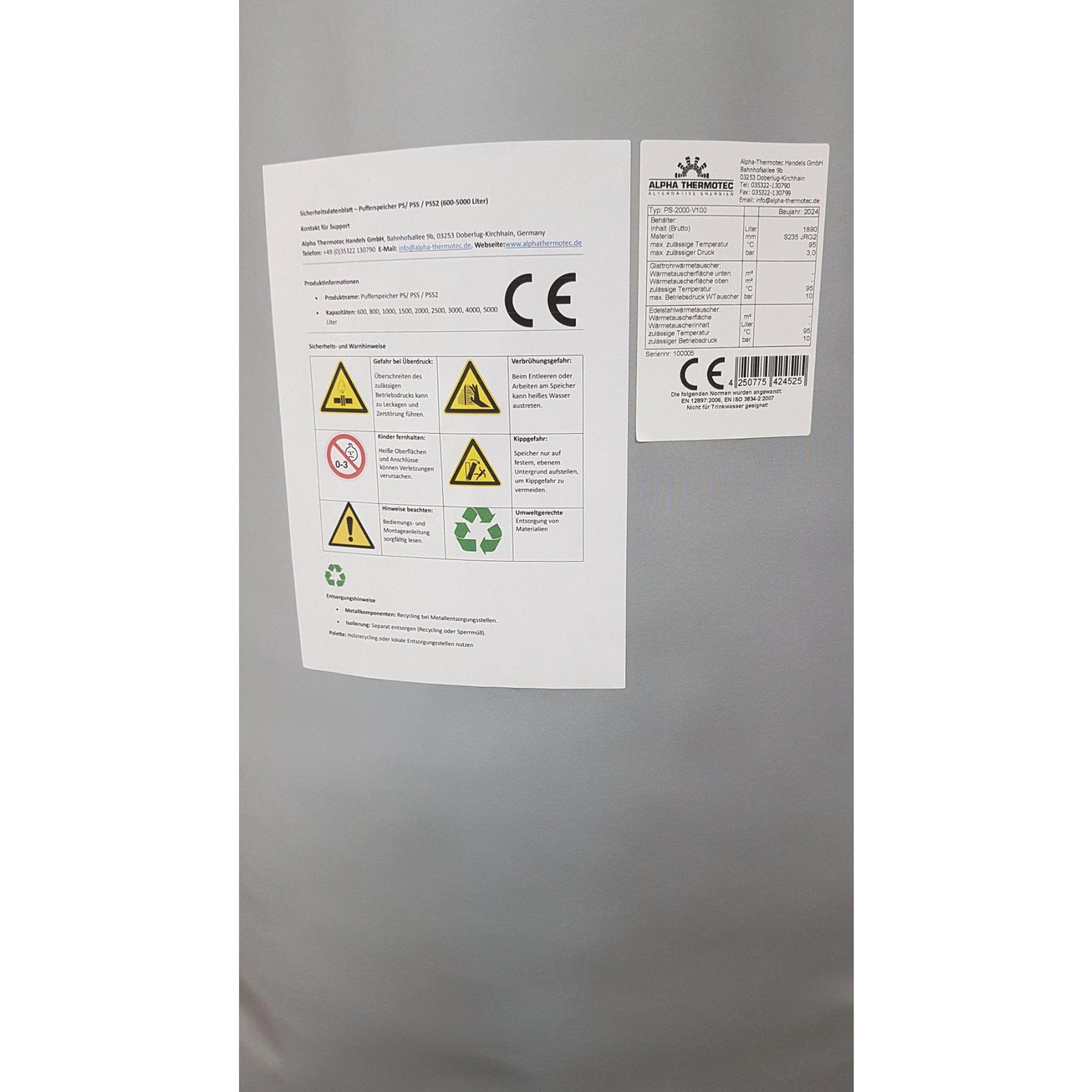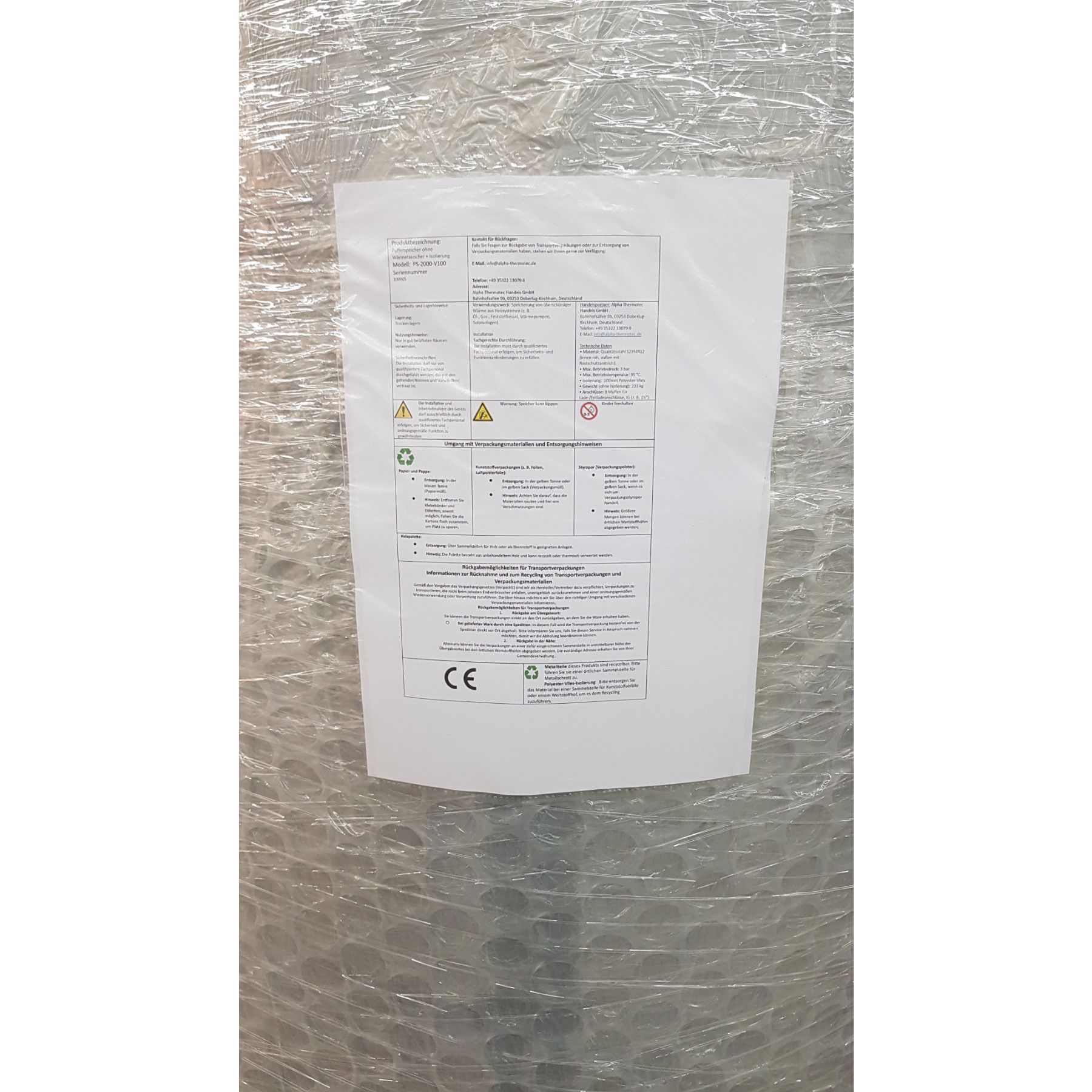 Pufferspeicher SPI 2000 L Isolierung Dämmung Flies