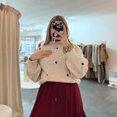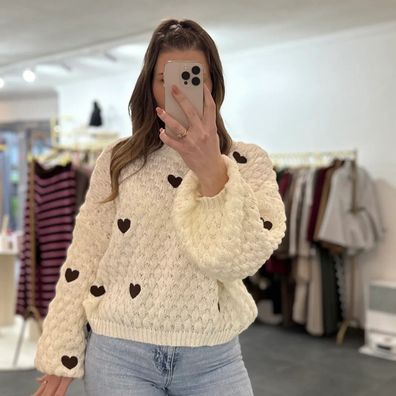 • Pullover mit Herzen Viktoria Creme Damen pullover Onesize XS-XL Frauen Pullover