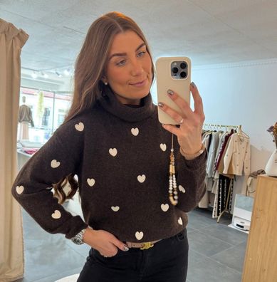 • Damen Pullover mit Herzen Elli Dunkelbraun Damenpullover Frau Pullover Onesize XS-XL