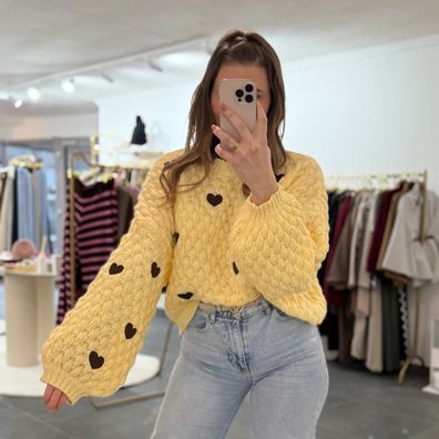 • Pullover mit Herzen Damen Lola Gelb Damenpullover Frauen Pullover Onesize XS-XL