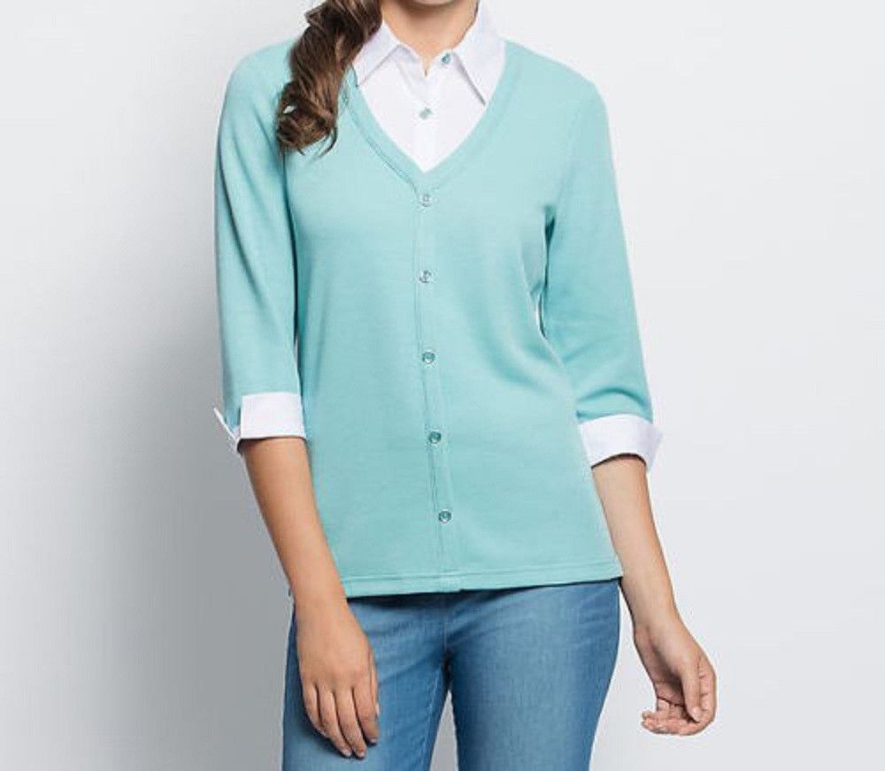Pullover Damen mit Bluseneinsatz 2-in-1 Look "türkis" Gr. 46. Neu mit Etikett