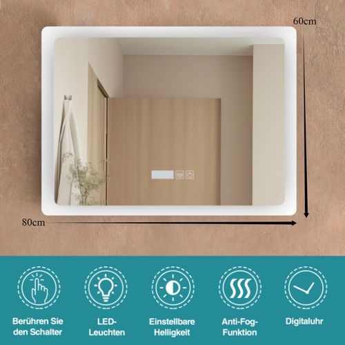 Puluomis 80x60cm LED Badspiegel mit Beleuchtung Beschlagfrei Touch-Schalter IP44