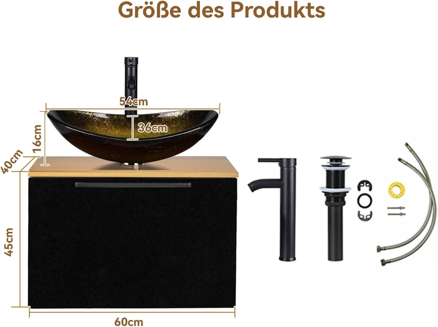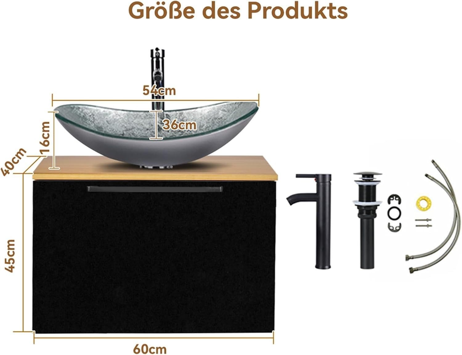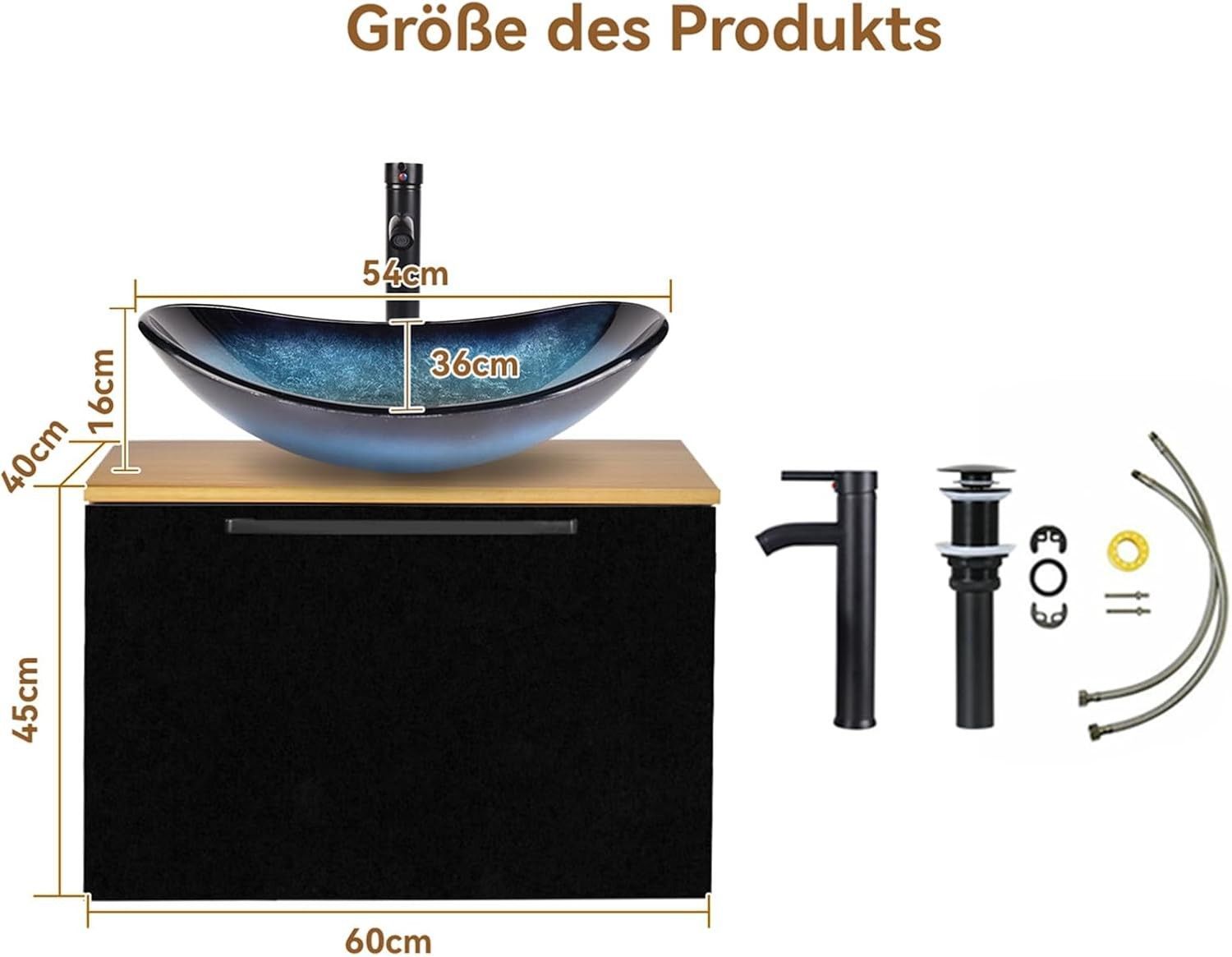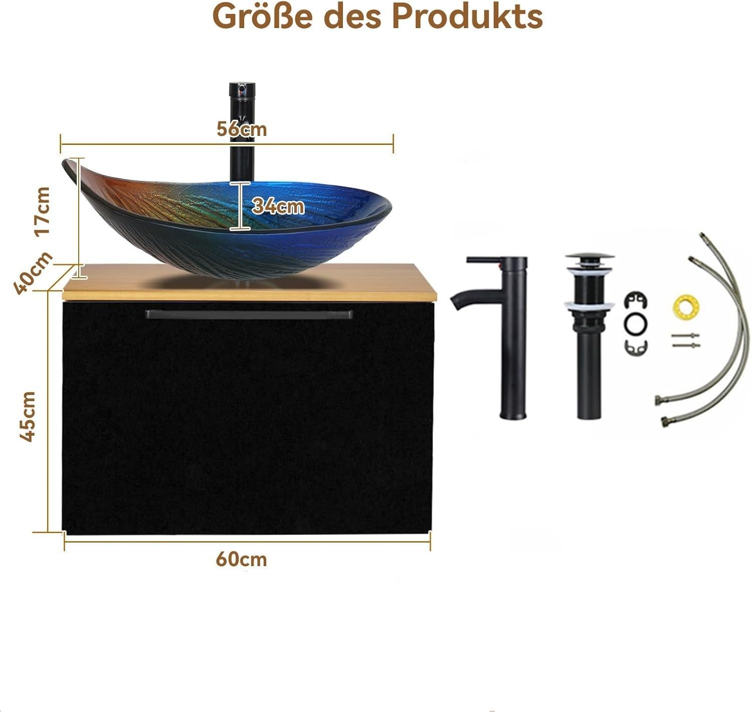 Puluomis Badmöbel Set 60 cm Unterschrank mit Waschbecken Badezimmermöbel Wandmontiert