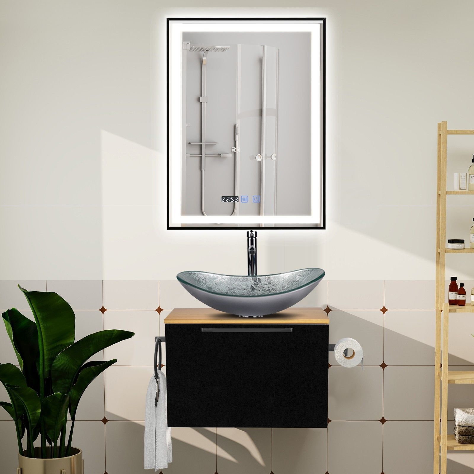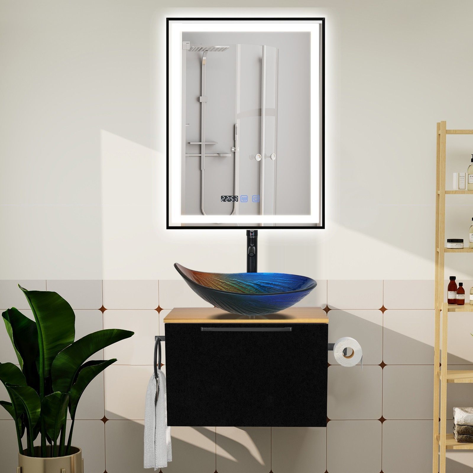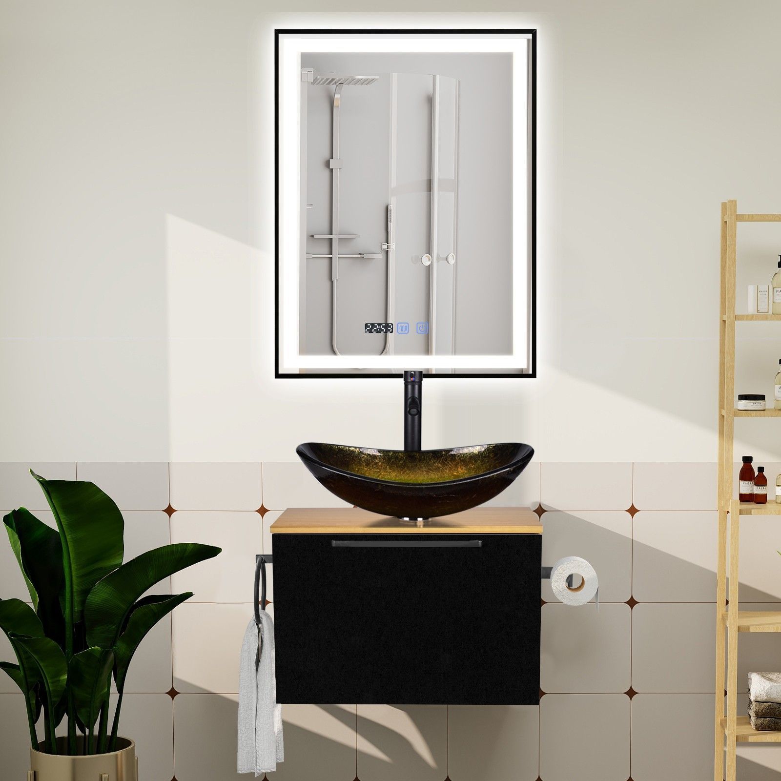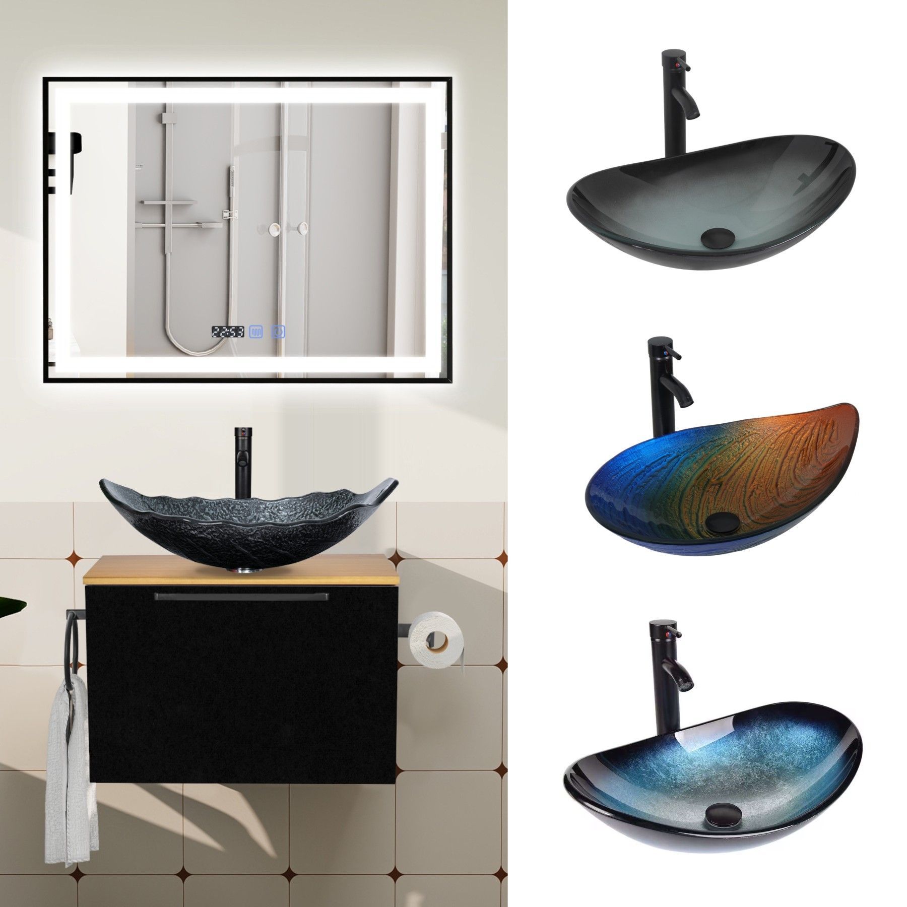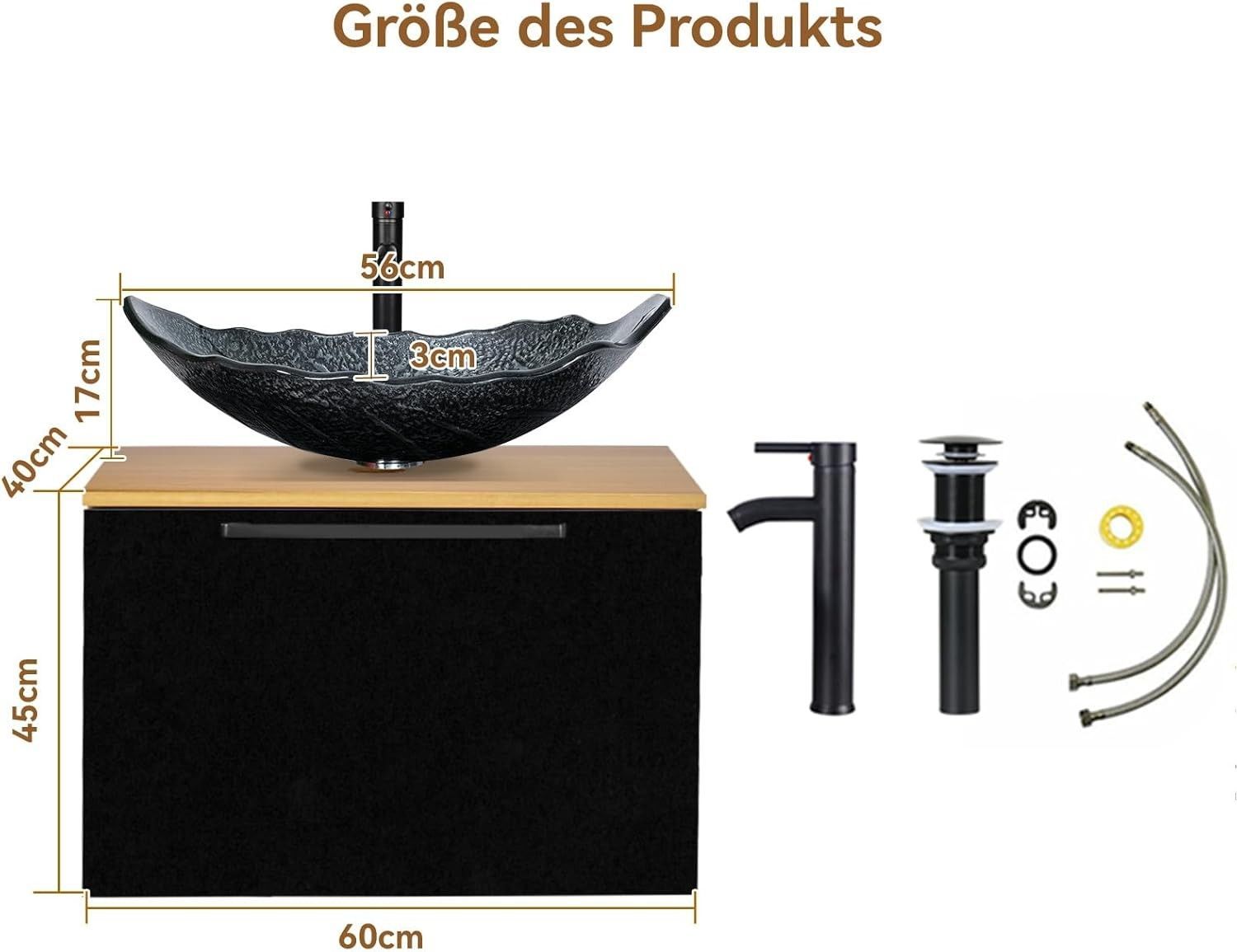 Puluomis Badmöbel Set 60 cm Unterschrank mit Waschbecken Badezimmermöbel Wandmontiert