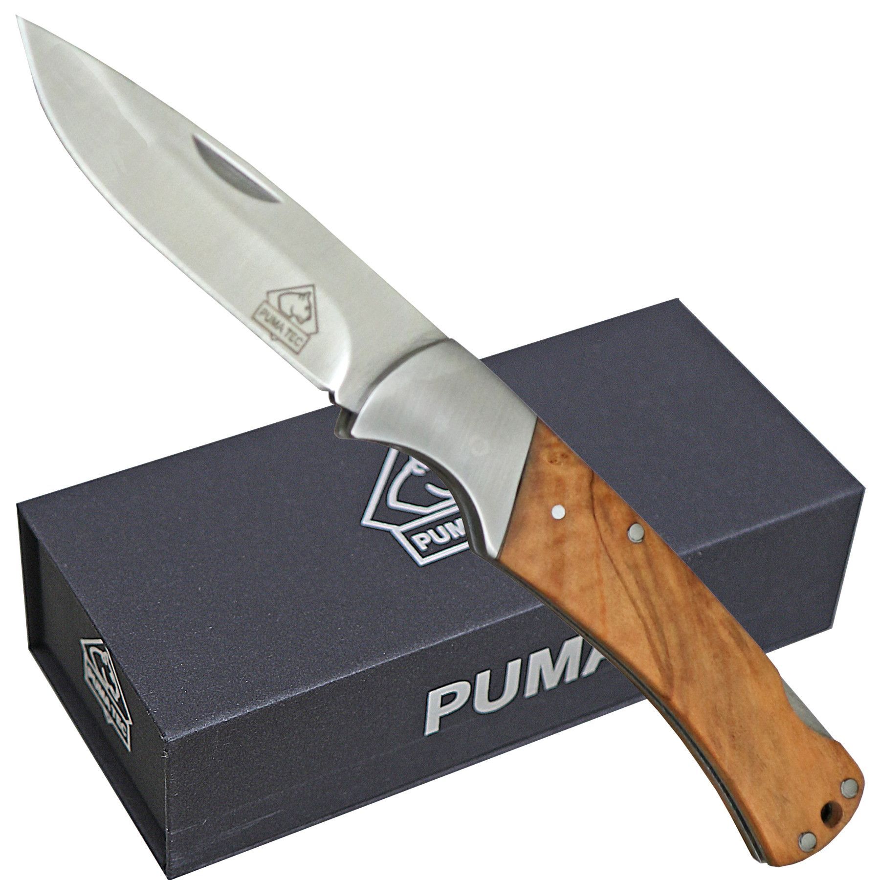 Puma TEC Taschenmesser, Back Lock, Edelstahlplatinen, Olivenholz Griffschalen