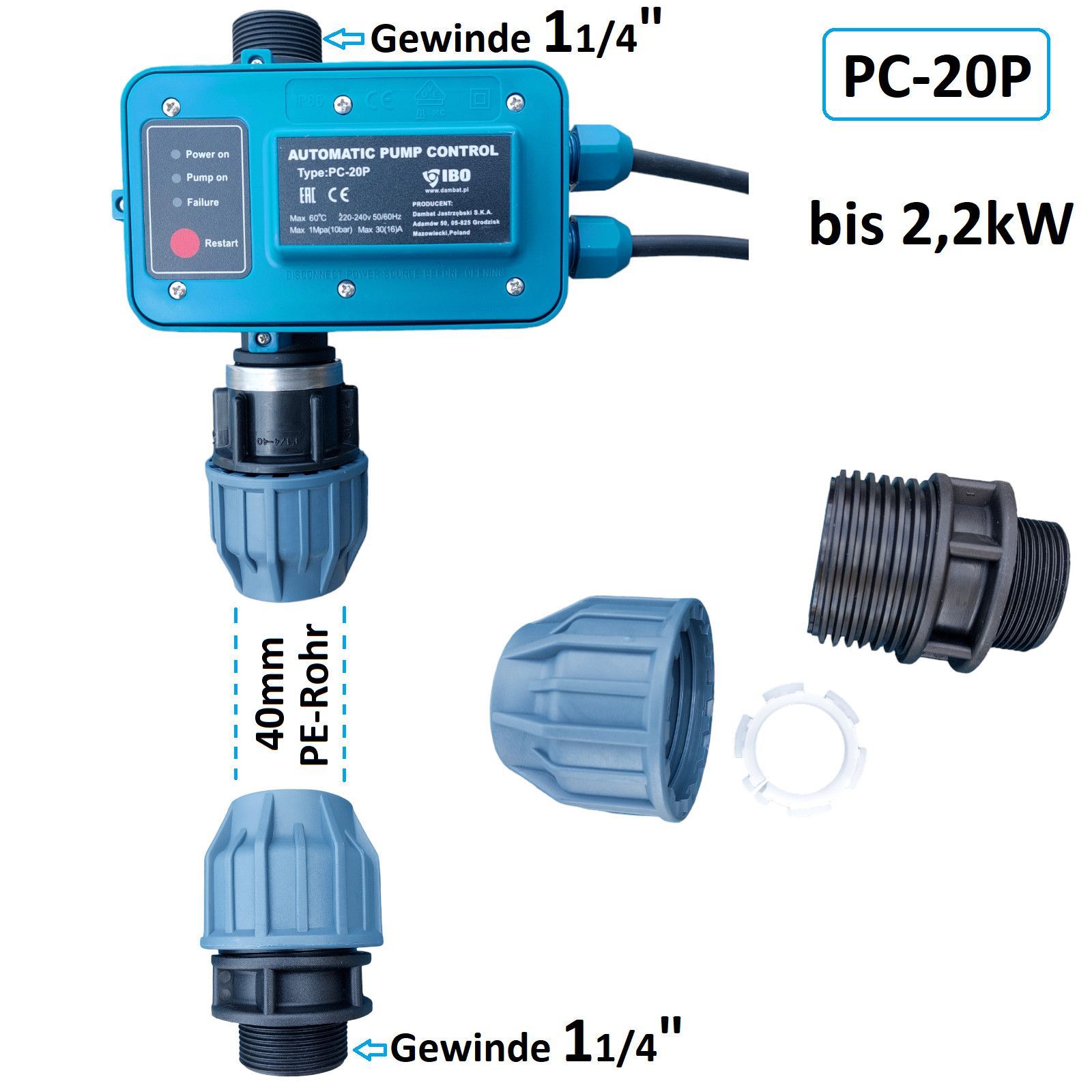 Pumpensteuerung PC-20P Gartenpumpe Tiefbrunnenpumpe Pumpe bis 2,2kW -30A + A-Set