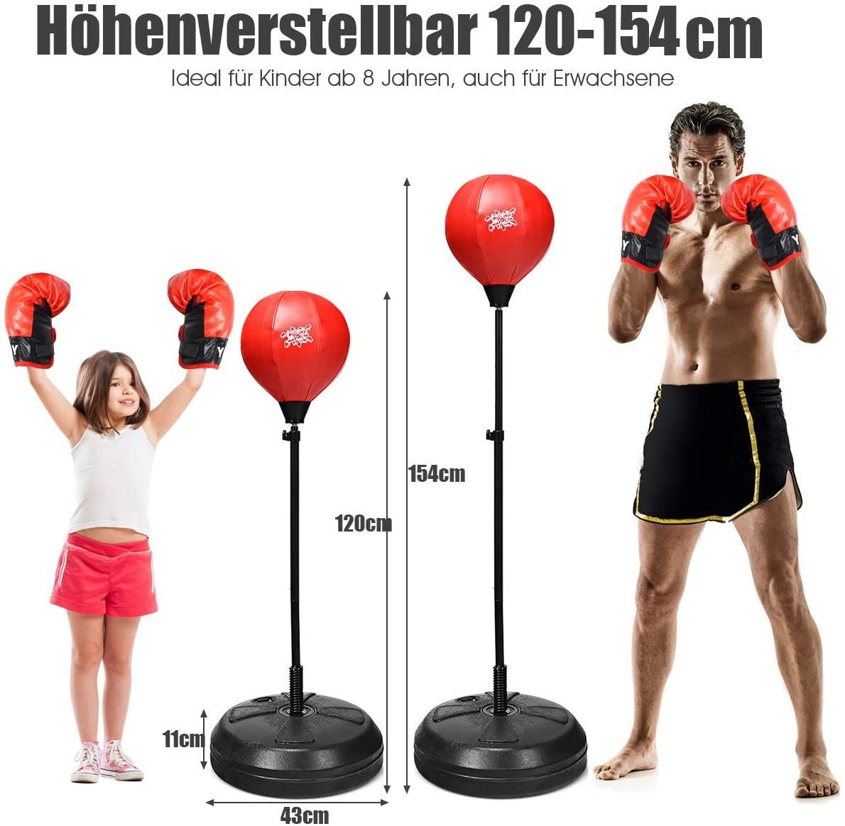 Punchingball 120-154cm höhenverstellbar, Standboxball freistehend, Boxsack Set Boxset