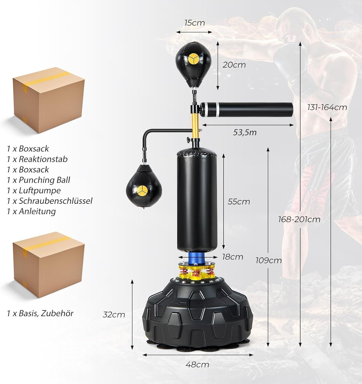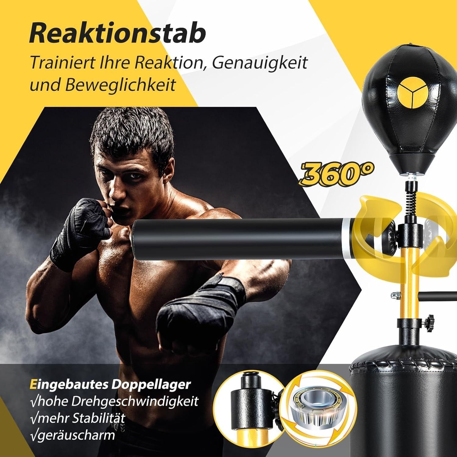 Punchingball stehend, 360 °Reflexstange, höhenverstellbarer Standboxsack