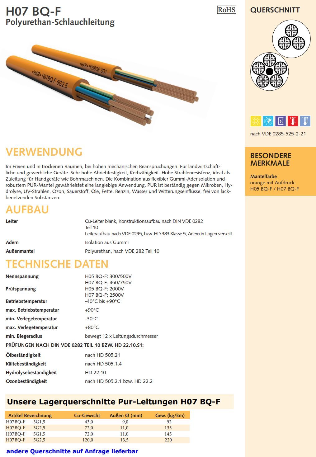 PUR-Leitung orange H07BQ-F 5x2,5mm2 Polyurethanleitung 5-100m + 15 Aderendhülsen
