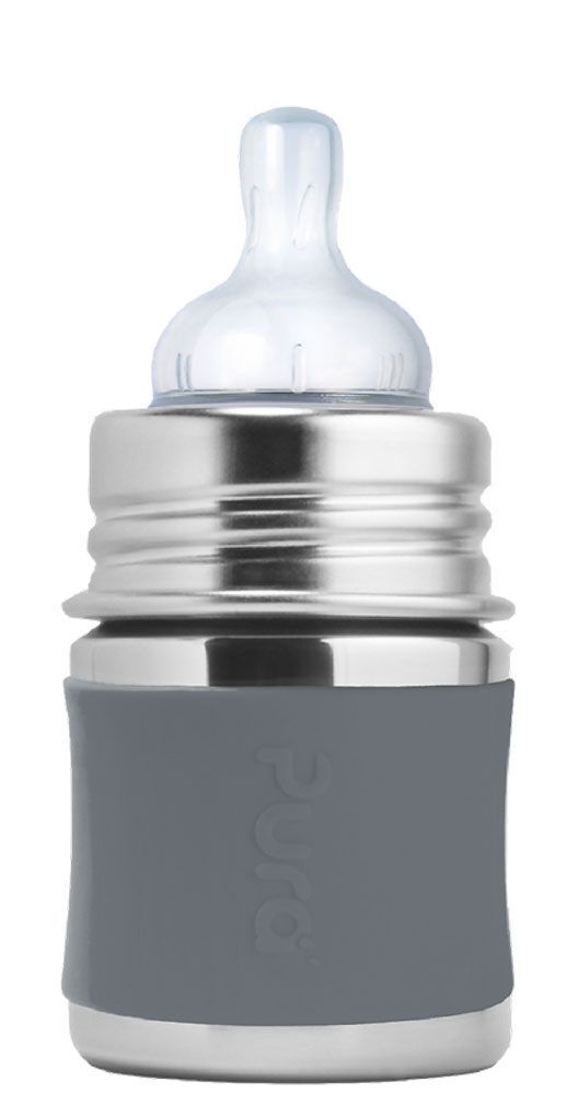 Pura Kiki Babyflasche mit Sauger, Edelstahl Sleeve Hülle, 150 ml, plastikfrei