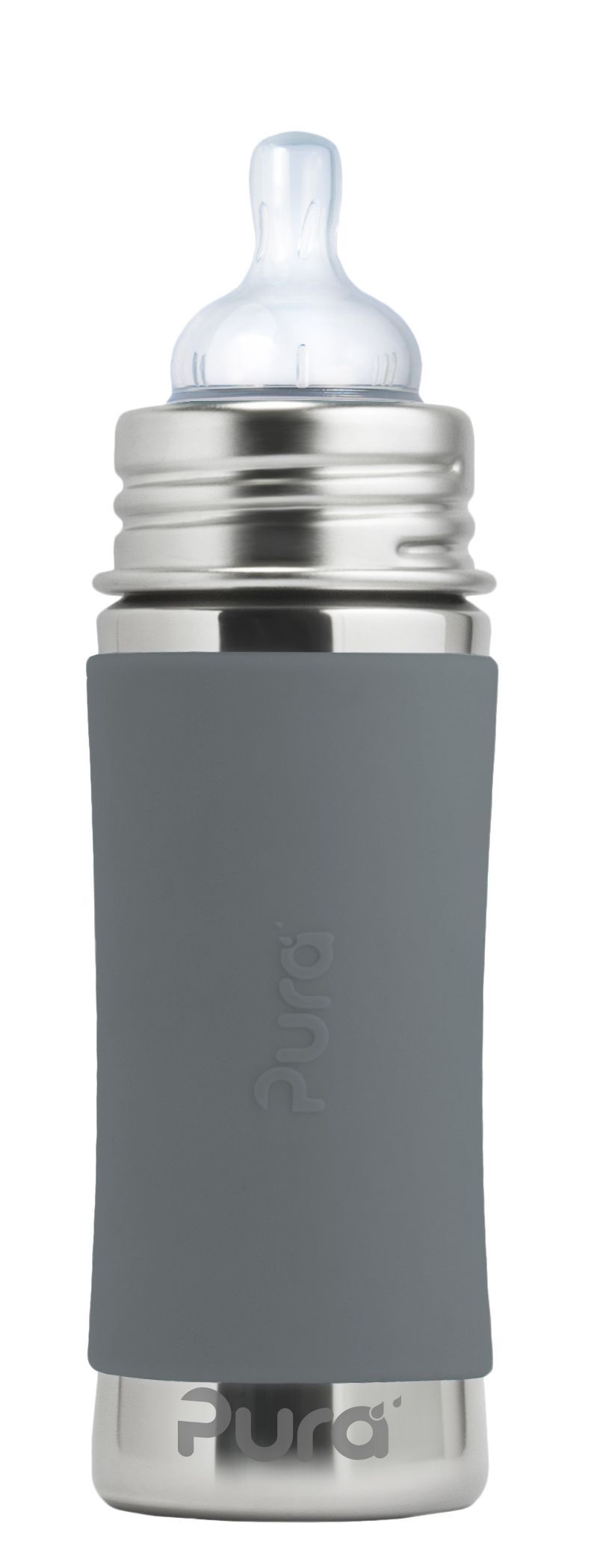 Pura Kiki Babyflasche mit Sauger, Edelstahl Sleeve Hülle, 300 ml, plastikfrei