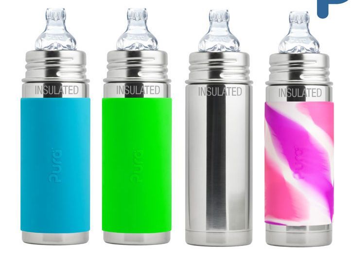 Pura Kiki Babyflasche mit Trinklern Aufsatz Isolierflasche, Edelstahl mit Silikonh