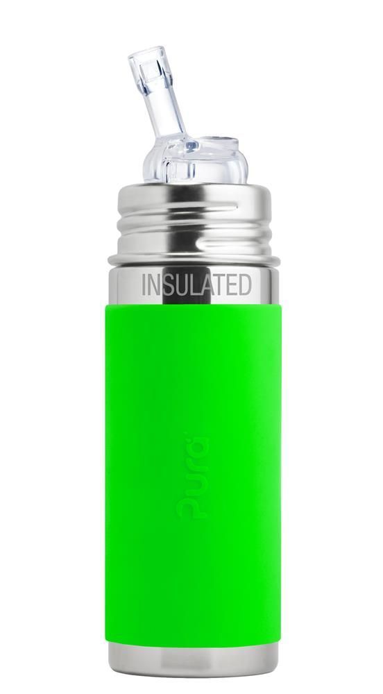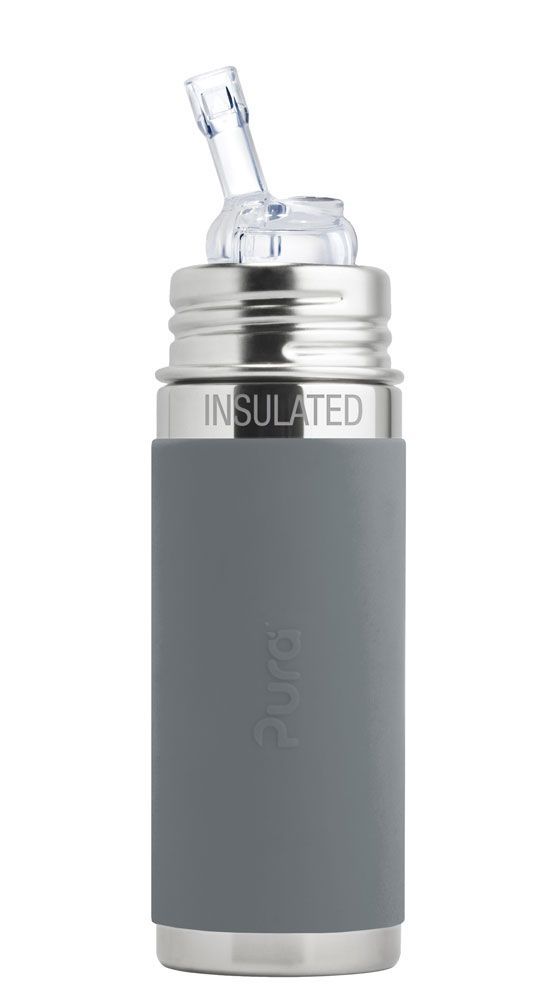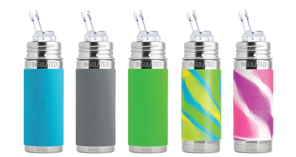 Pura Kiki Isolierflasche mit Strohhalm, Edelstahl mit Silikonhülle Sleeve, 250 ml