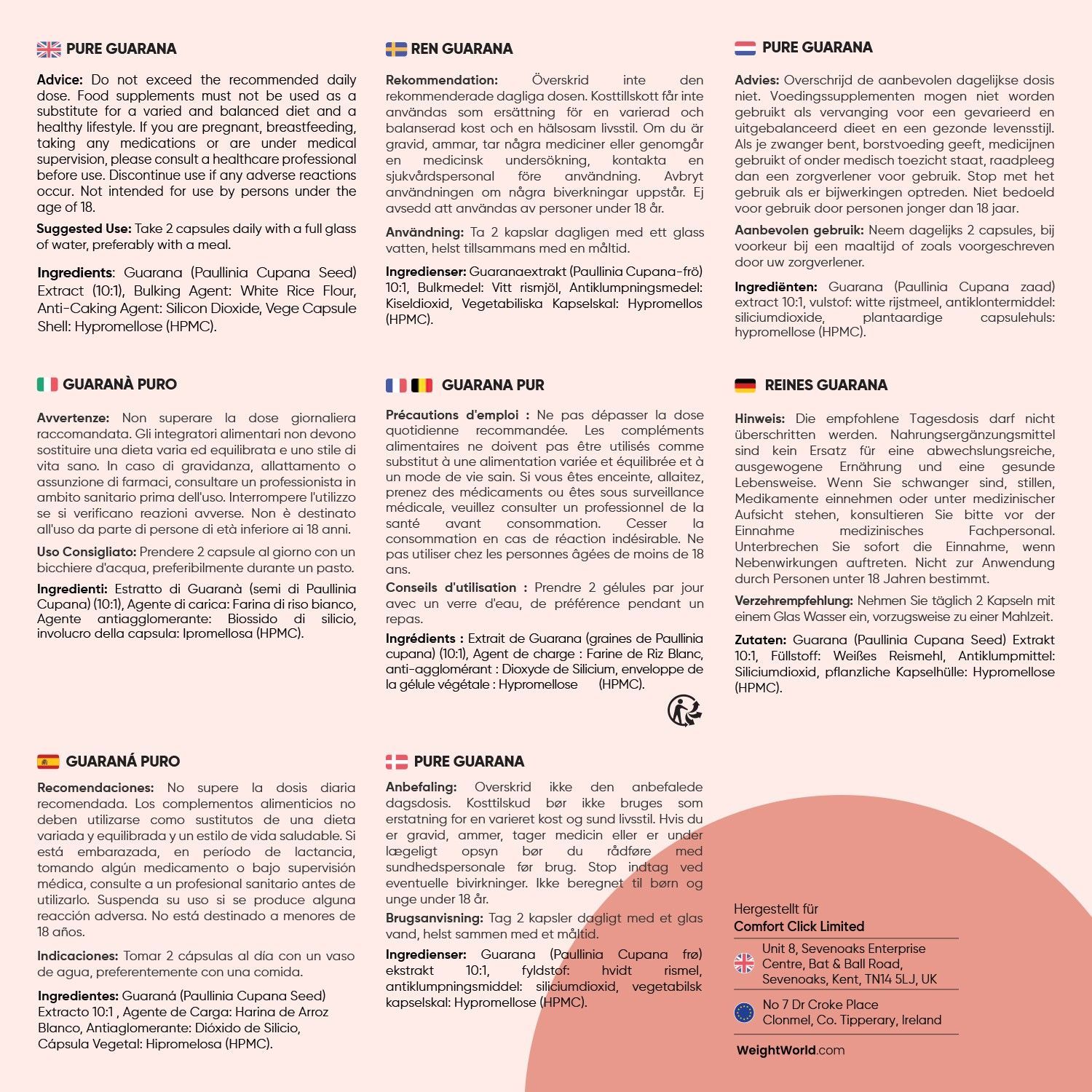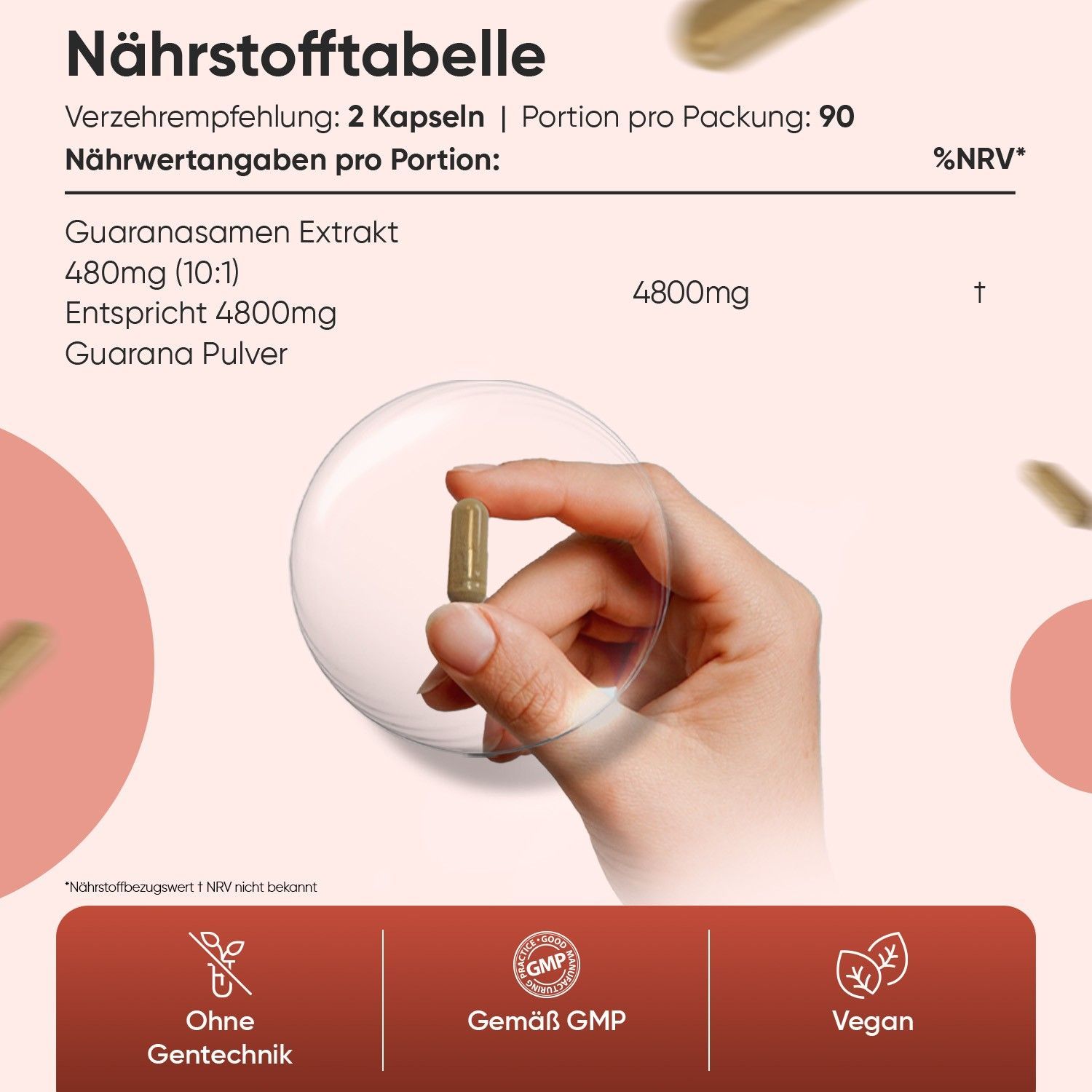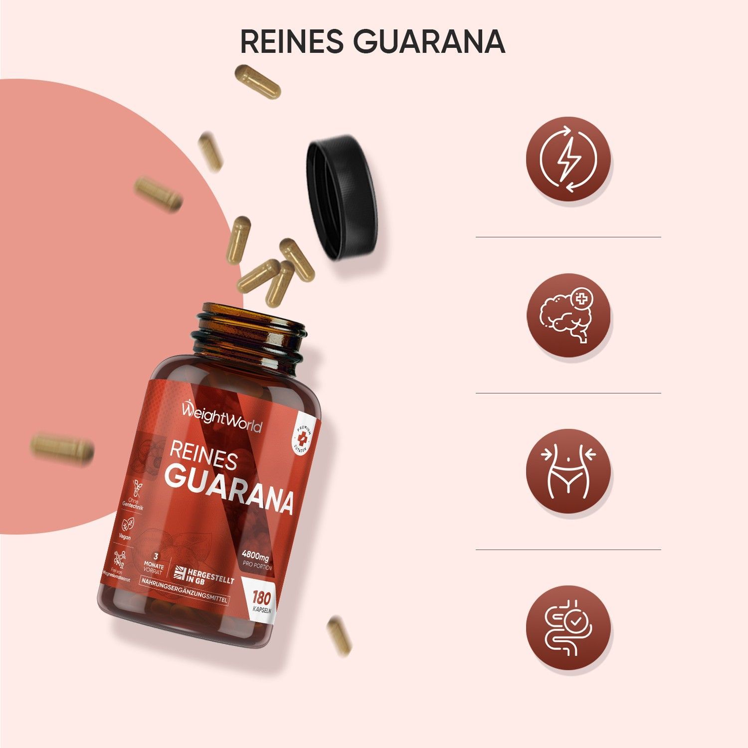 Pure Guarana Kapseln - 4800mg Guarana Pulver pro Portion - 180 Stück- WeightWorld