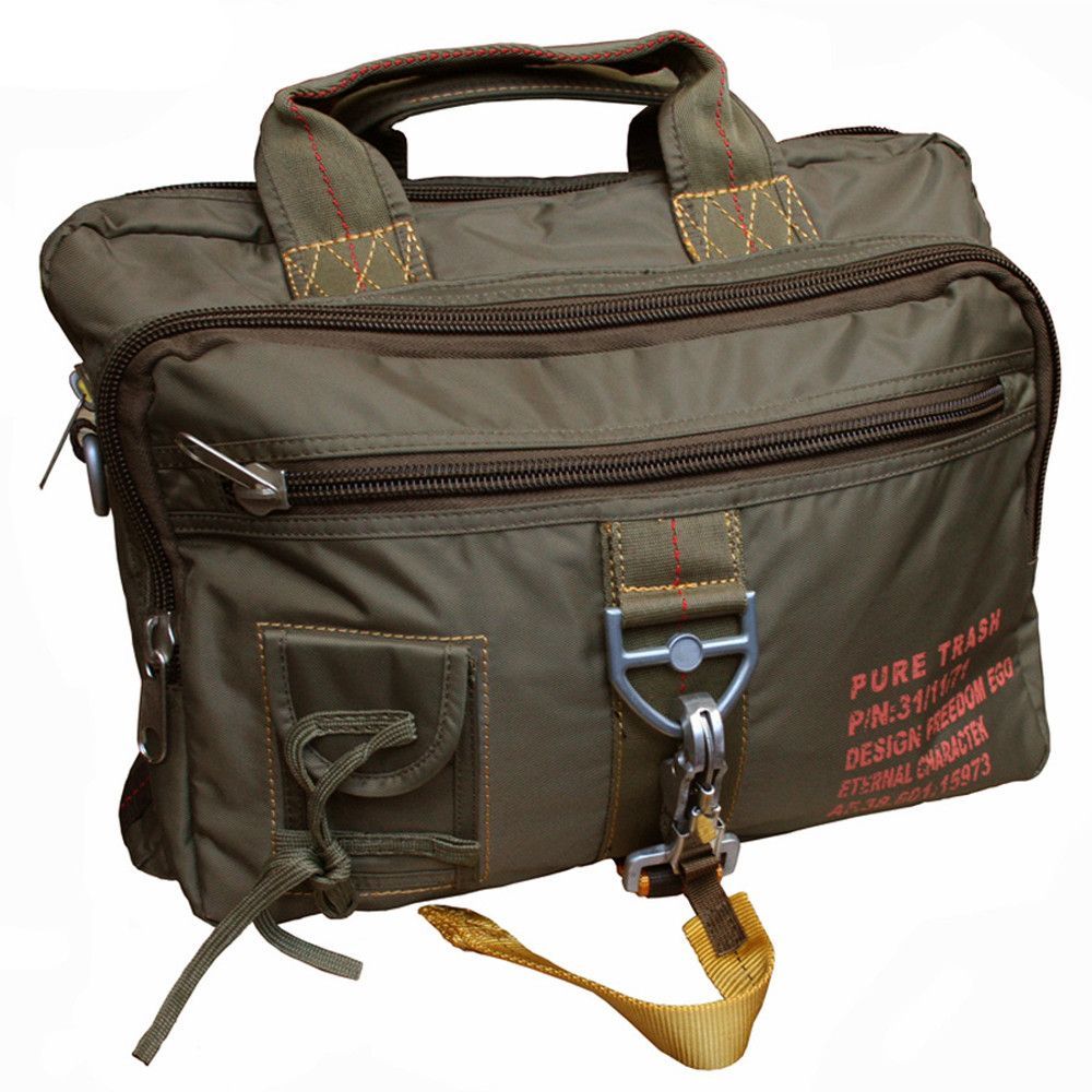 Pure Trash Handtasche oliv groß Schultergurt Schultertasche Outdoor 40 x 30 x 10 cm