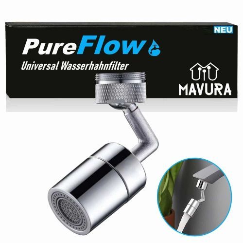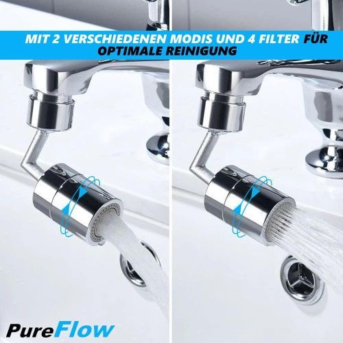 PureFlow Universal Spritzfilter Schwenkbrause Wasserhahnaufsatz 720° Brause