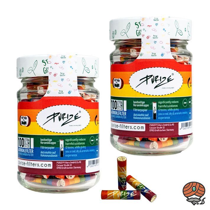 2 x PURIZE ® Aktivkohlefilter XTRA SLIM We love diversity , Glas mit 100 Stück Marke: PURIZE ® Produktart: Filter für alle Selbstgedrehten Länge: 26,9 mm Durchmesser: 5,9 mm Füllung: Aktivkohle auf Kokosnuss-Basis Besonderheit: Keramikkappen an beiden Enden Farbe: Regenbogenfarben Inhalt: 2 Gläser à