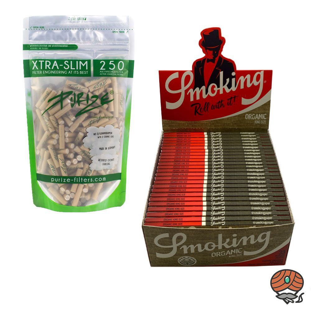 Purize Set: 250 Purize Xtra Slim Aktivkohlefilter + Smoking Organic Ultrathin Papers Purize Xtra Slim Aktivkohlefilter Organic Marke: PURIZE ® Produktart: Filter für alle Selbstgedrehten Länge: 26,9 mm Durchmesser: 5,9 mm Füllung: Aktivkohle auf Kokosnuss-Basis Besonderheit: Keramikkappen an beiden