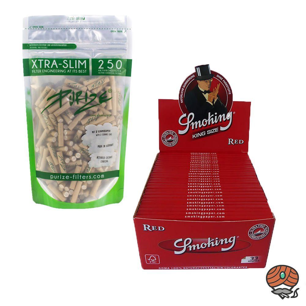 Purize Set: 250 Purize Xtra Slim Aktivkohlefilter + Smoking Red Papers