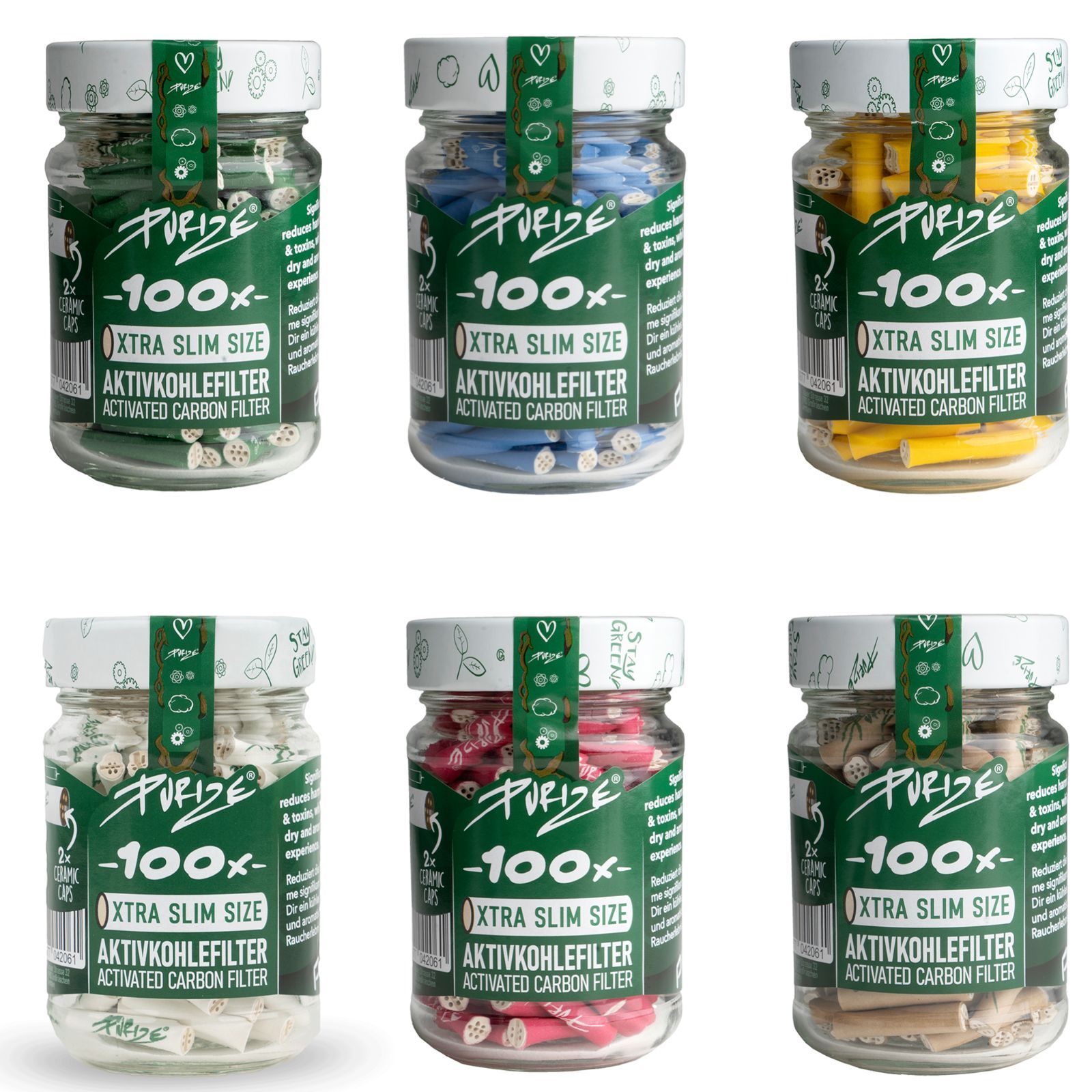PURIZE Xtra Slim Size Aktivkohlefilter 100 Stück im Glas 6 mm Farbe wählbar